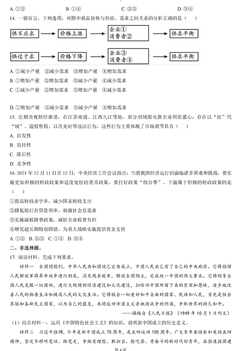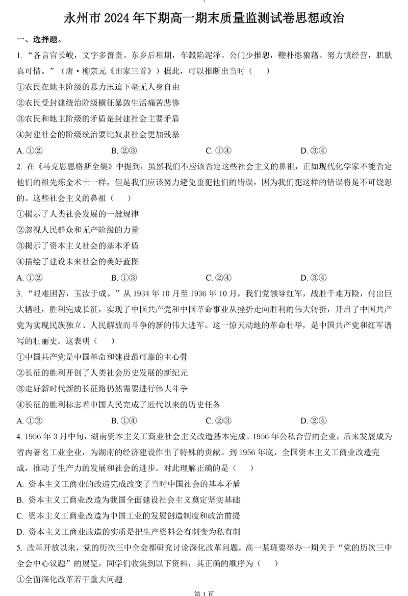 湖南永州2024-2025学年高一上期末质量监测政治试题及答案 时间:2025-01-27 湖南 高中政治 湖南省永州市2024-2025学年高一上学期期末质量监测政治考试已于近日开考,为方便考生考后及时查看考试情况,查漏补缺、弥补不足,本文整理了试题答案解析相关信息! 政治试题及答案解析