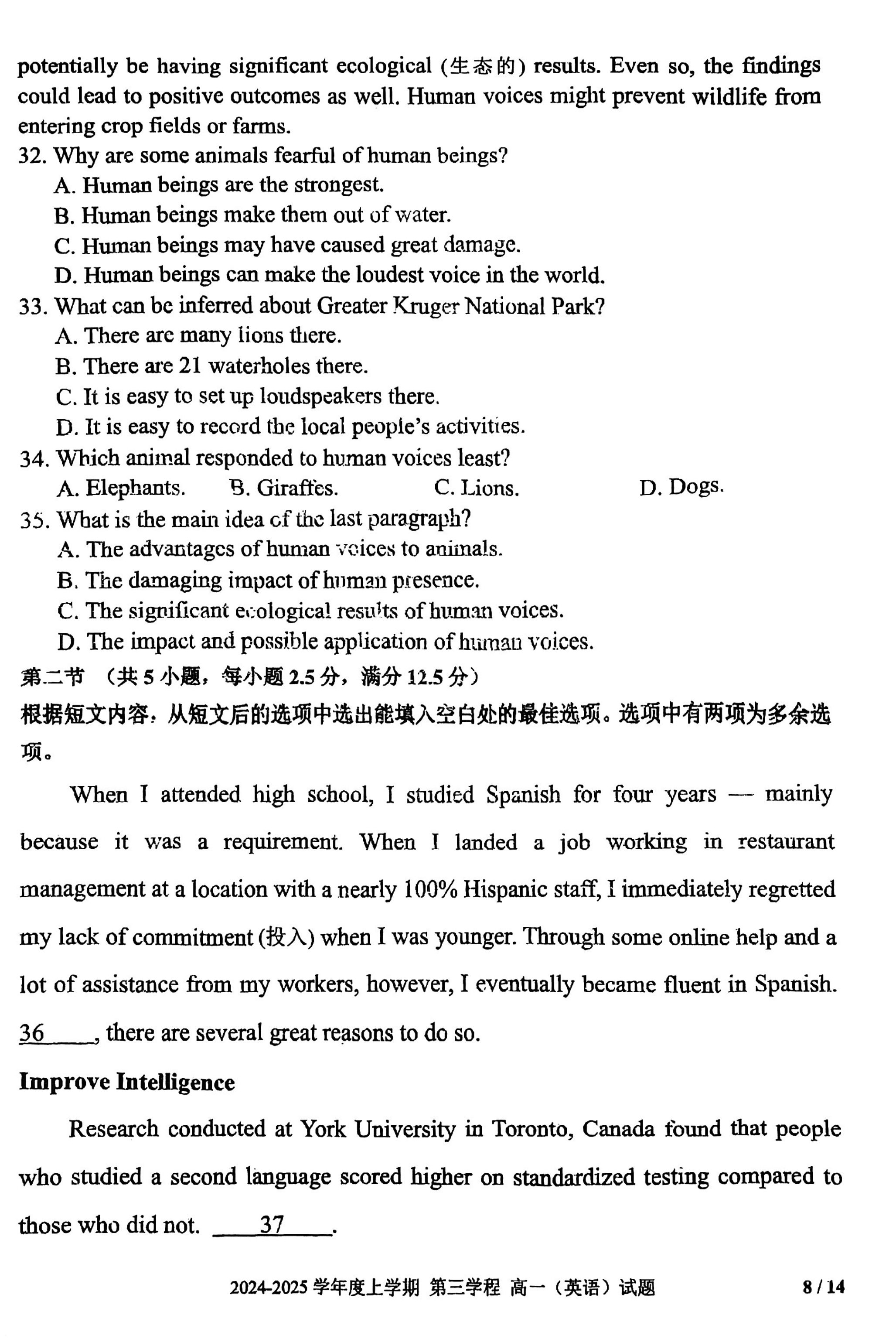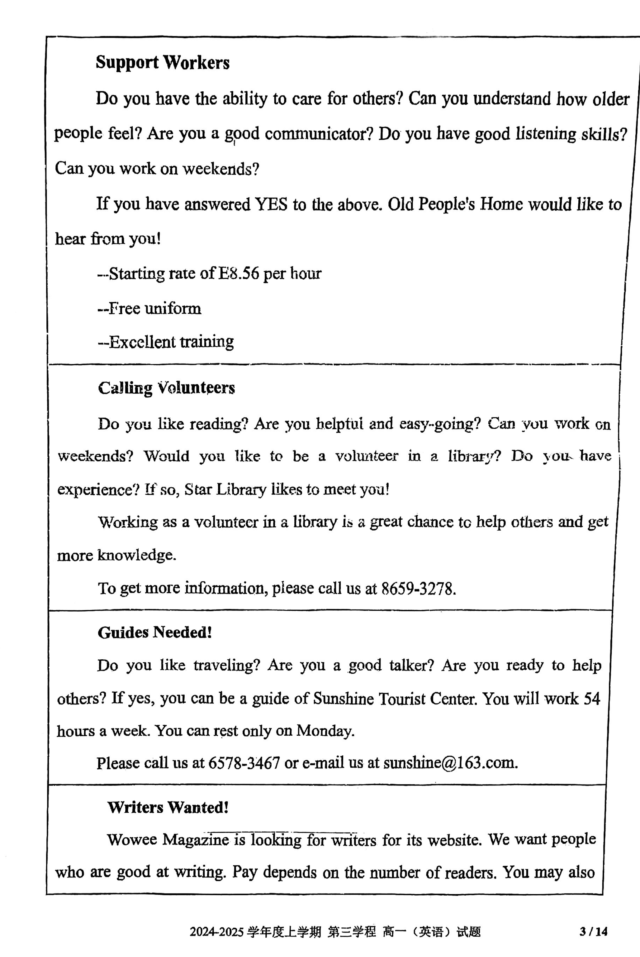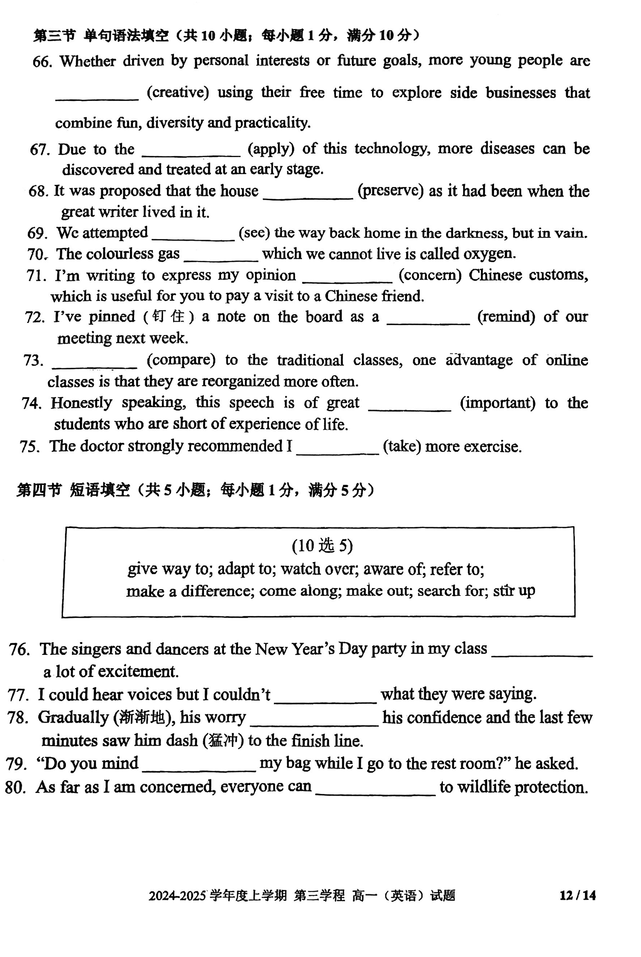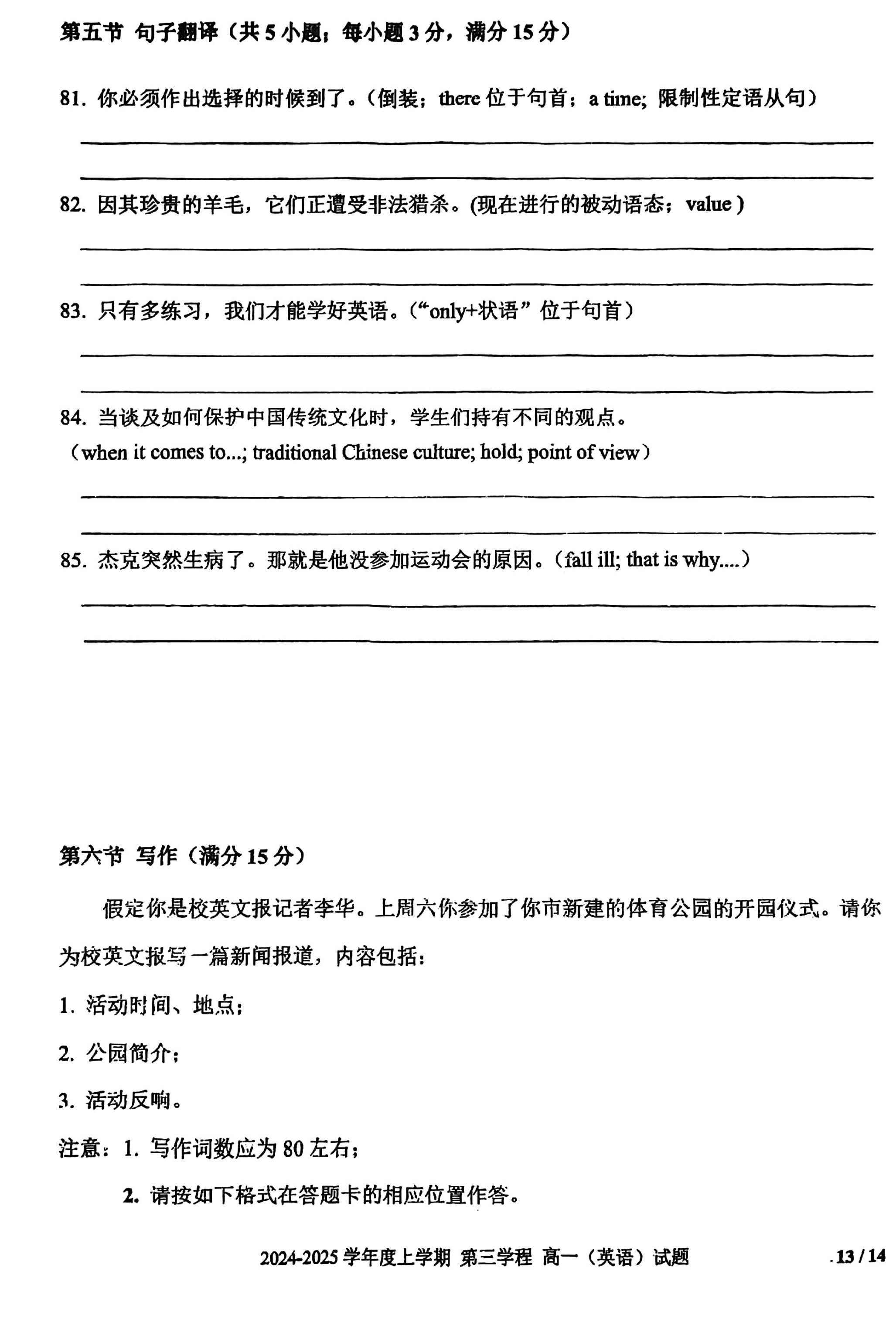 长春十一高中2024-2025学年高一上学期第三学程考英语试题及答案 时间:2025-01-27 吉林 高中英语 长春十一高中2024-2025学年高一上学期第三学程考英语考试已于近日开考,为方便考生考后及时查看考试情况,查漏补缺、弥补不足,本文整理了试题答案解析相关信息! 英语试题及答案解析
