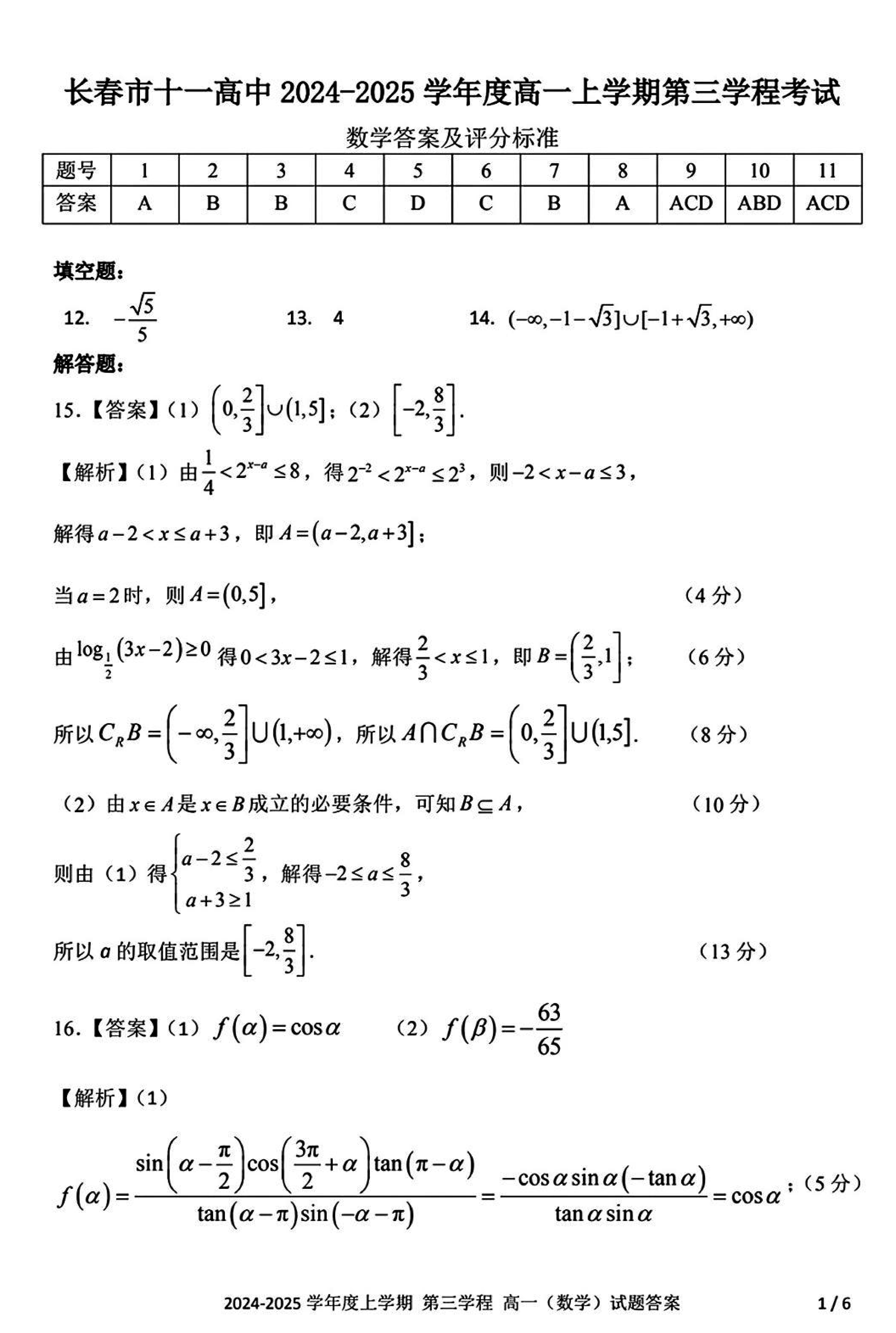 长春十一高中2024-2025学年高一上学期第三学程考数学试题及答案 时间:2025-01-27 吉林 高中数学 长春十一高中2024-2025学年高一上学期第三学程考数学考试已于近日开考,为方便考生考后及时查看考试情况,查漏补缺、弥补不足,本文整理了试题答案解析相关信息! 数学试题及答案解析