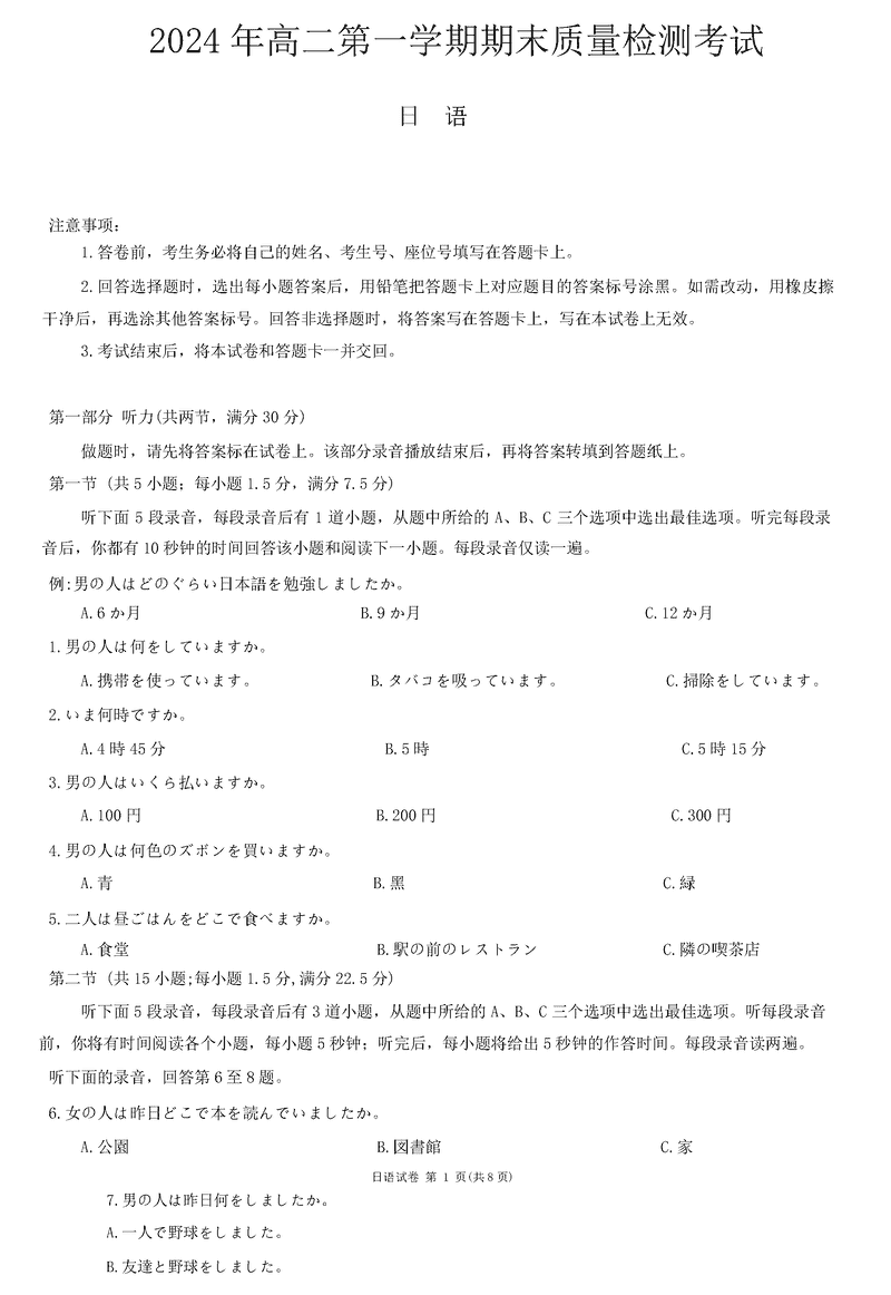 湖南省炎德英才名校联合体2024-2025学年高二上学期期末联考日语考试已于近日开考,为方便考生考后及时查看考试情况,查漏补缺、弥补不足,本文整理了试题答案解析相关信息!