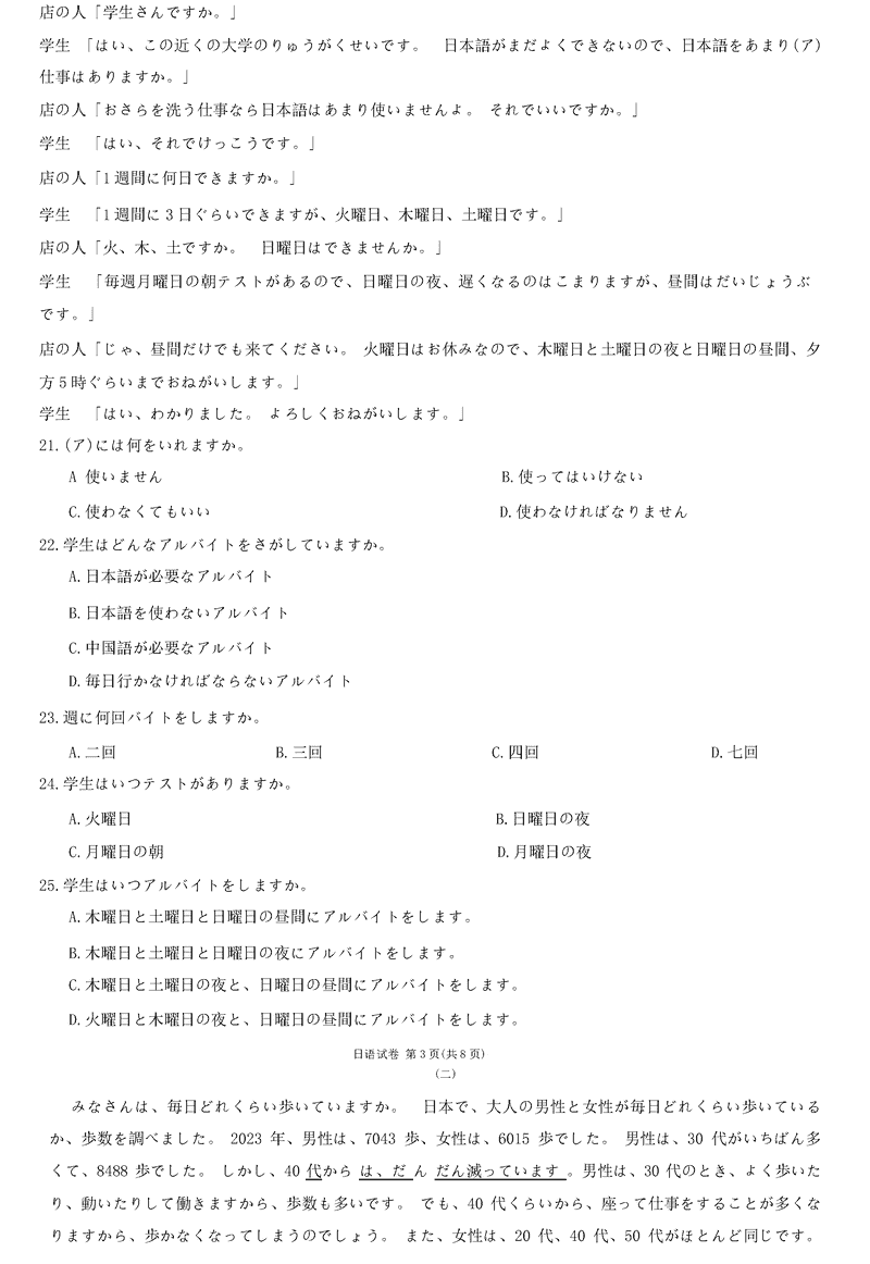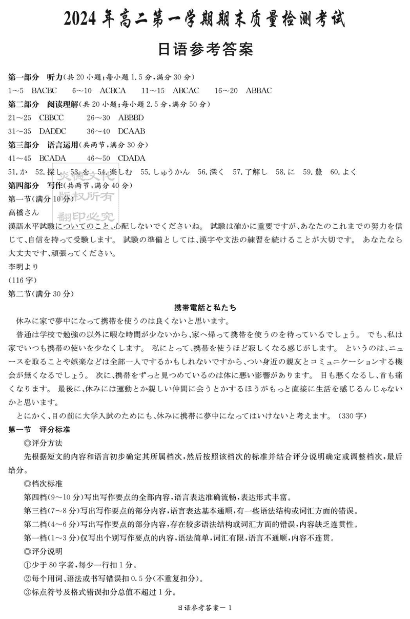 湖南炎德英才名校联合体2024-2025学年高二上学期期末联考日语试题及答案