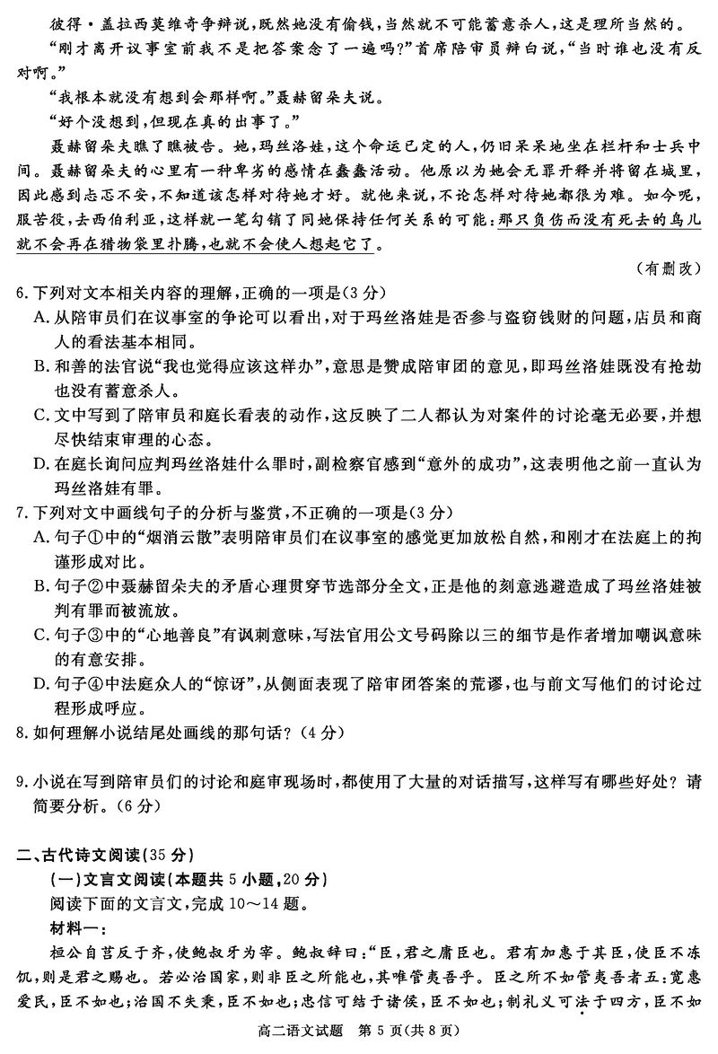 四川遂宁2024-2025学年高二上学期期末语文试题及答案 时间:2025-01-27 四川 高中语文 四川遂宁2024-2025学年高二上学期期末语文考试已于近日开考,为方便考生考后及时查看考试情况,查漏补缺、弥补不足,本文整理了试题答案解析相关信息! 语文试题及答案解析