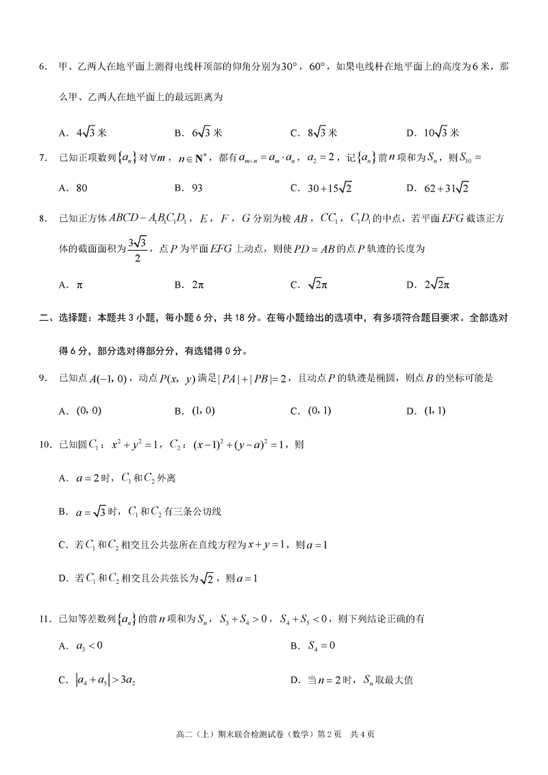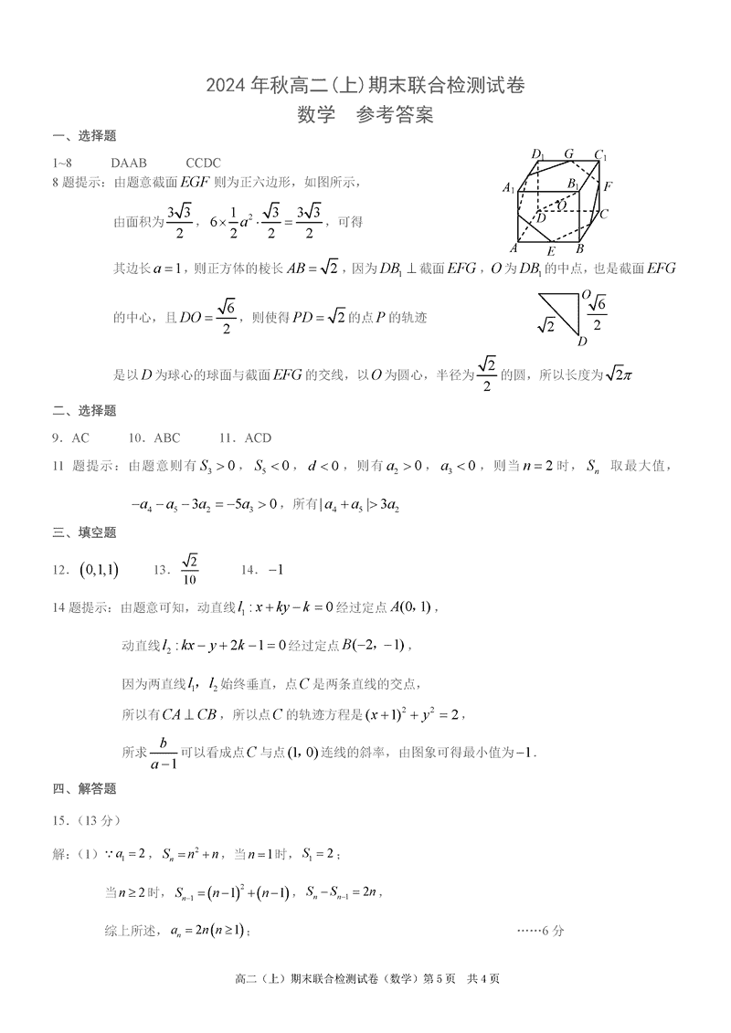 重庆康德2024年秋高二上学期期末数学试题及答案 时间:2025-01-27 重庆 高中数学 重庆康德2024年秋高二上学期期末数学考试已于近日开考,为方便考生考后及时查看考试情况,查漏补缺、弥补不足,本文整理了试题答案解析相关信息! 数学试题及答案解析