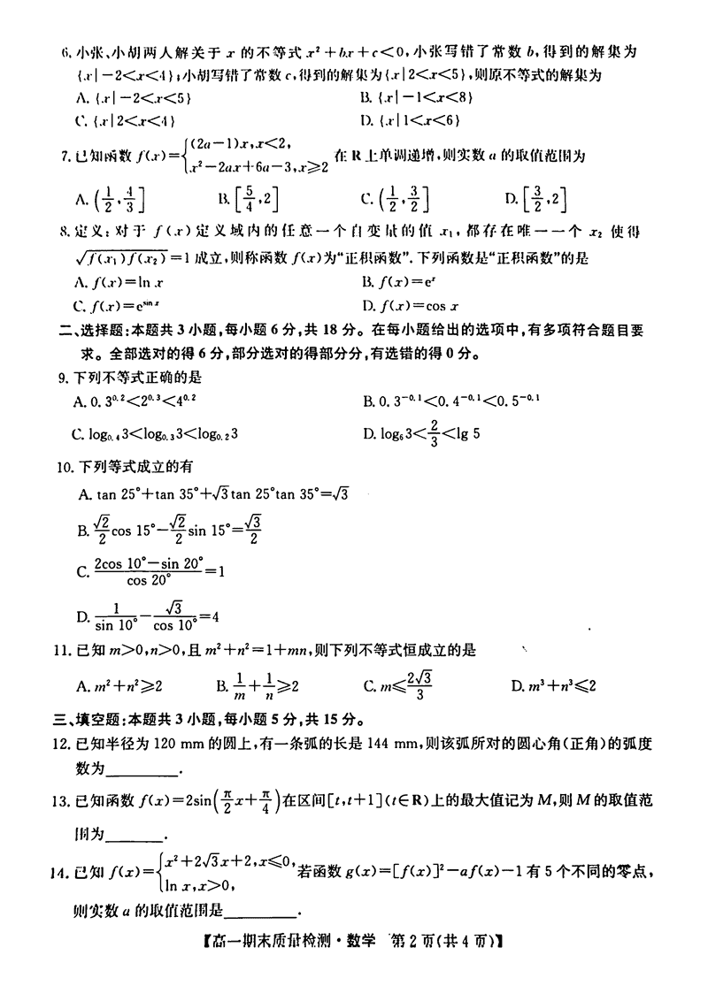 陕西榆林八校联考2024-2025学年高一上学期1月期末数学试题及答案 时间:2025-01-27 陕西 高中数学 陕西省榆林市八校联考2024-2025学年高一上学期1月期末数学考试已于近日开考,为方便考生考后及时查看考试情况,查漏补缺、弥补不足,本文整理了试题答案解析相关信息! 数学试题及答案解析