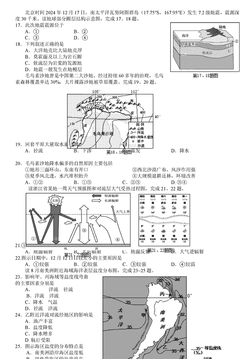 浙江金华十校2024-2025学年高一上学期期末调研地理试题及答案 时间:2025-01-27 浙江 高中地理 浙江省金华十校2024-2025学年高一上学期期末调研地理考试已于近日开考,为方便考生考后及时查看考试情况,查漏补缺、弥补不足,本文整理了试题答案解析相关信息! 地理试题及答案解析