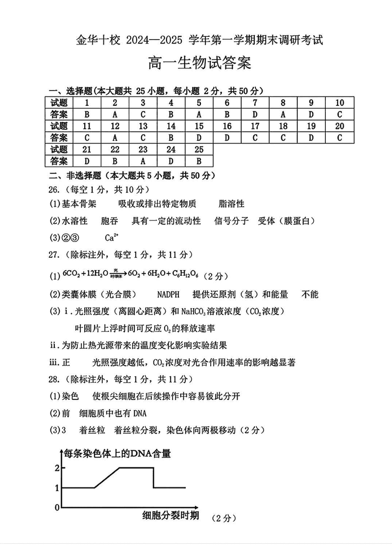浙江金华十校2024-2025学年高一上学期期末调研生物试题及答案 时间:2025-01-27 浙江 高中生物 浙江省金华十校2024-2025学年高一上学期期末调研生物考试已于近日开考,为方便考生考后及时查看考试情况,查漏补缺、弥补不足,本文整理了试题答案解析相关信息! 生物试题及答案解析