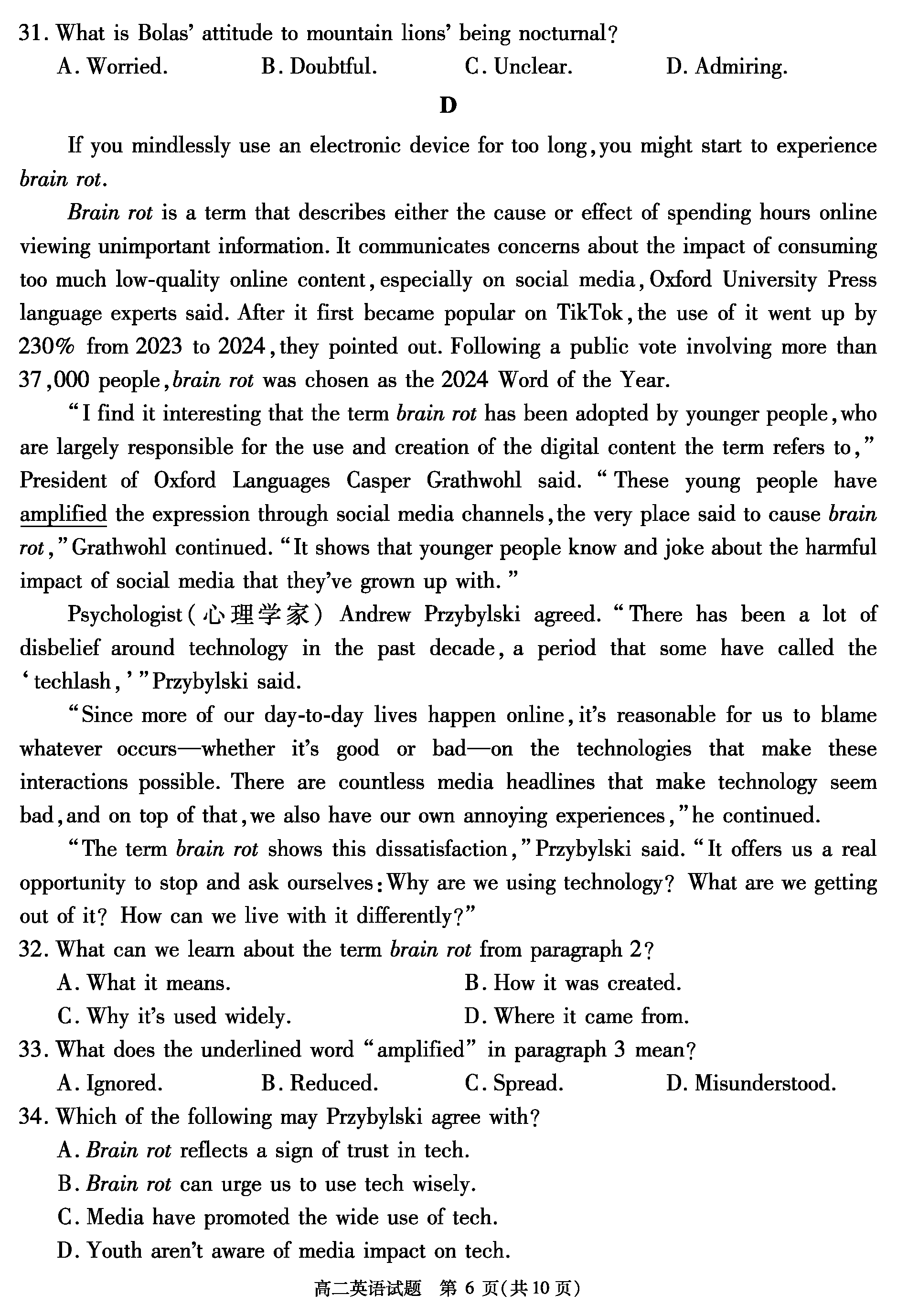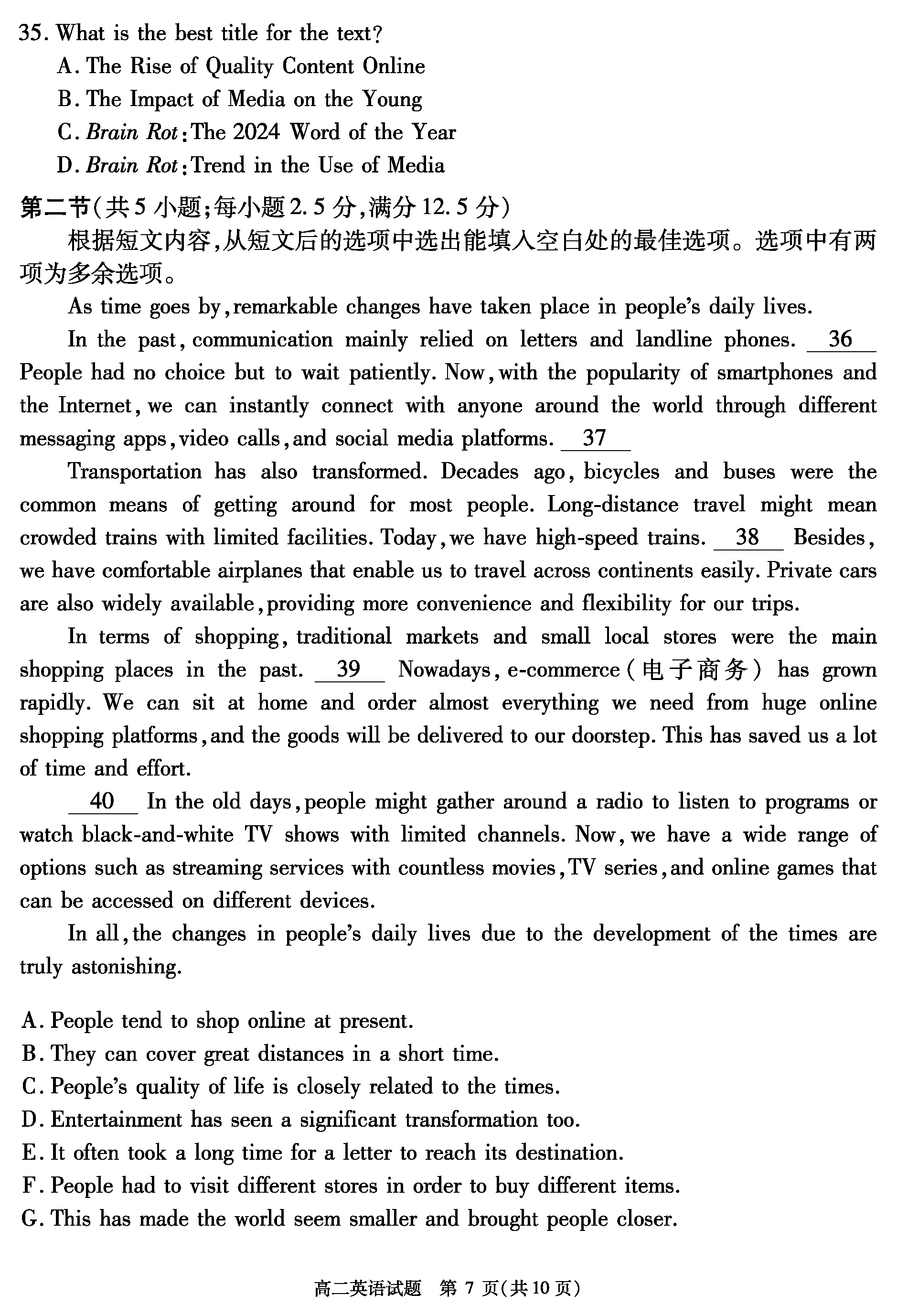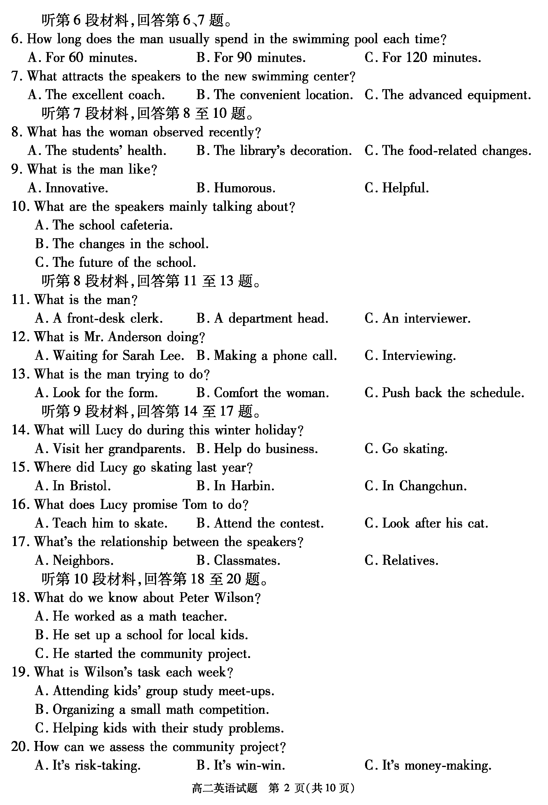 自贡市、遂宁市、广安市等2024-2025学年高二上学期期末英语试题及答案