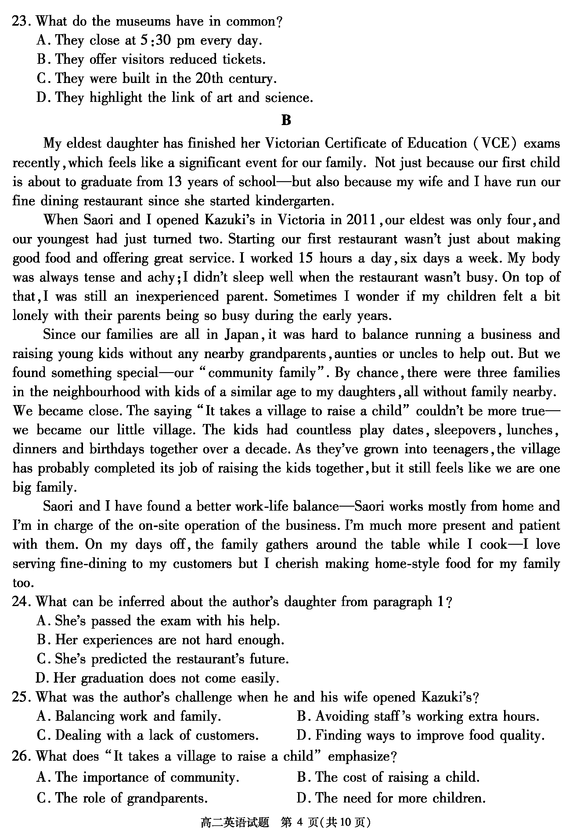 四川自贡市、遂宁市、广安市等2024-2025学年高二上学期期末英语考试已于近日开考,为方便考生考后及时查看考试情况,查漏补缺、弥补不足,本文整理了试题答案解析相关信息!