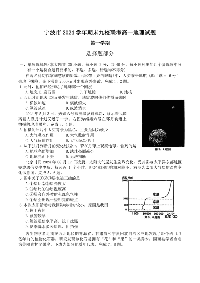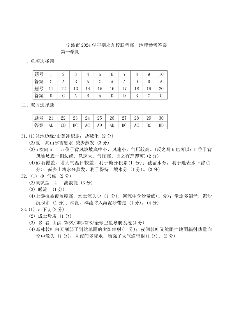 宁波九校2024-2025学年高一上学期期末地理试题及答案 时间:2025-01-27 浙江 高中地理 浙江省宁波市九校2024-2025学年高一上学期期末地理考试已于近日开考,为方便考生考后及时查看考试情况,查漏补缺、弥补不足,本文整理了试题答案解析相关信息! 地理试题及答案解析