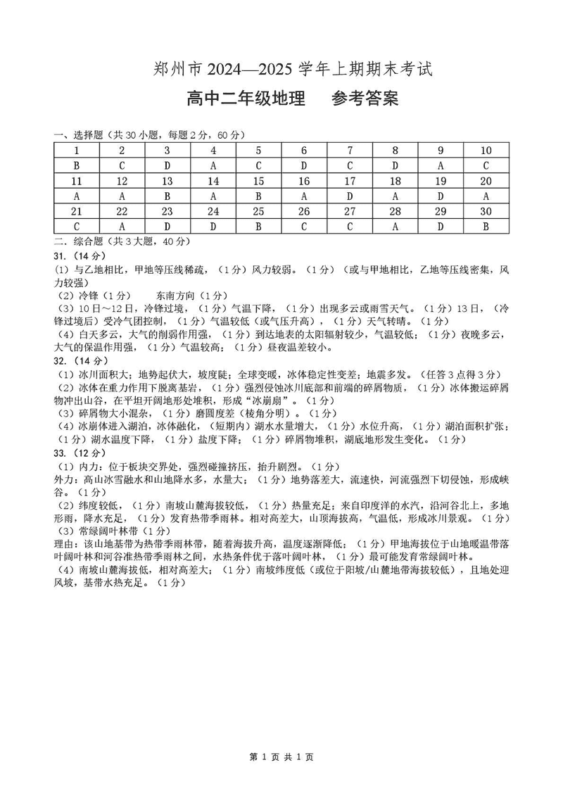 河南郑州2024-2025学年高二上学期期末地理试题及答案 时间:2025-01-27 河南 高中地理 四川遂宁2024-2025学年高二上学期期末地理考试已于近日开考,为方便考生考后及时查看考试情况,查漏补缺、弥补不足,本文整理了试题答案解析相关信息! 地理试题及答案解析