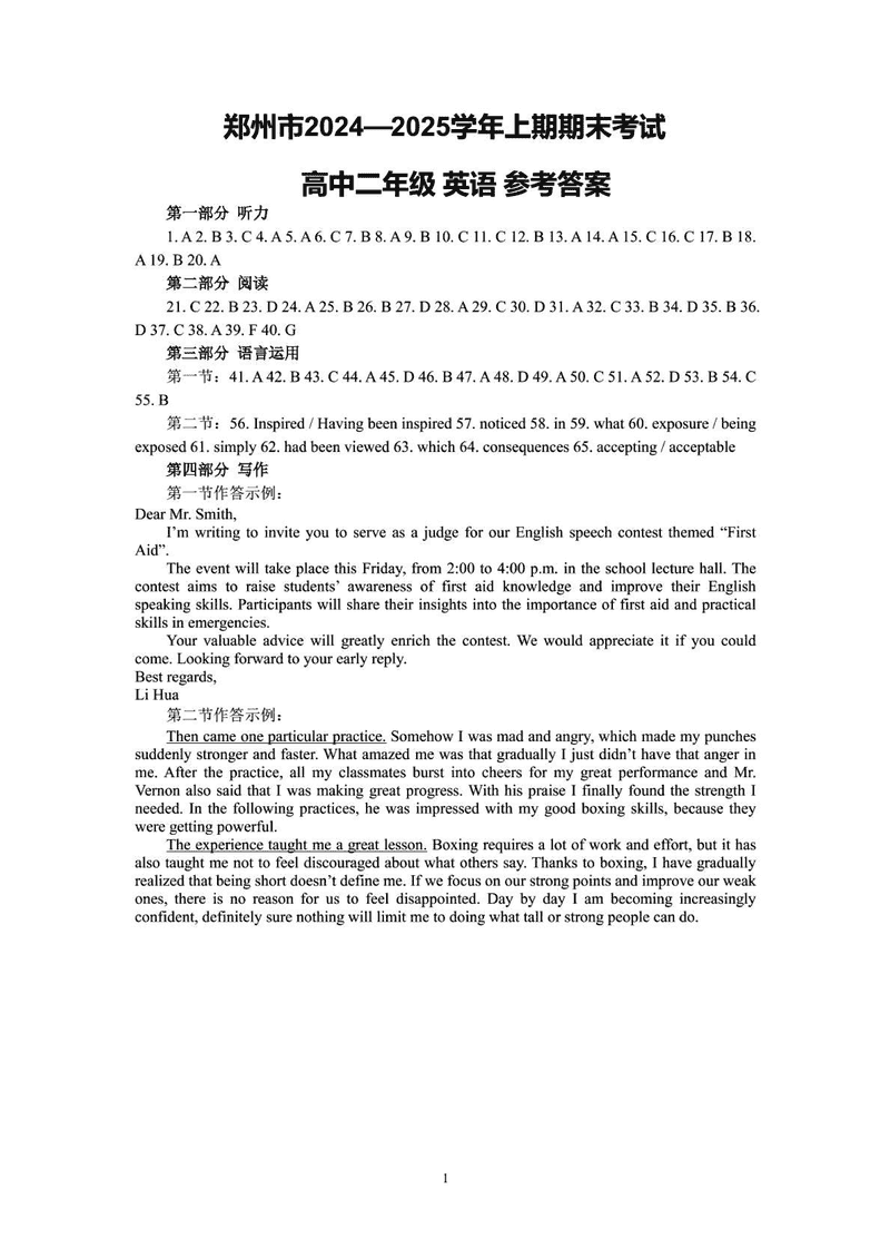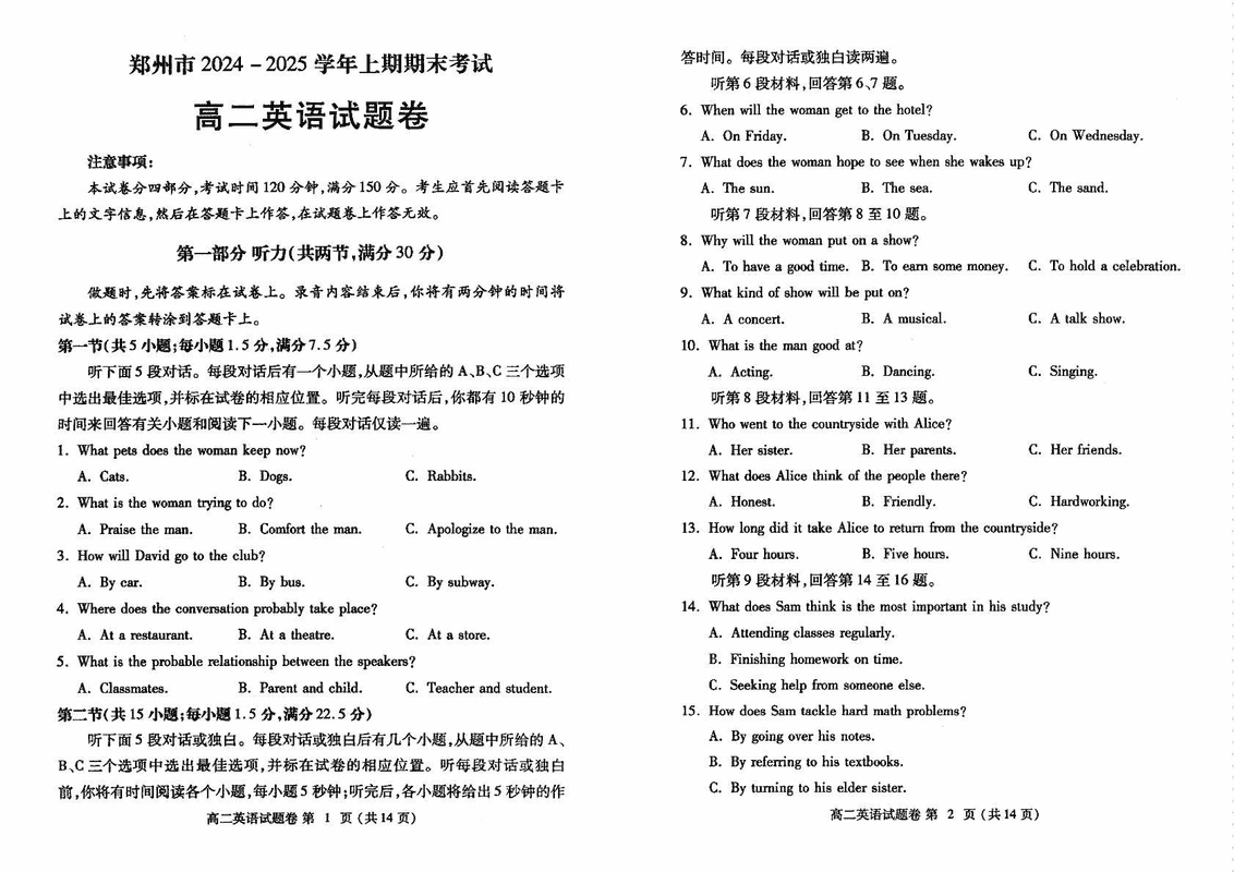 河南郑州2024-2025学年高二上学期期末英语试题及答案 时间:2025-01-27 河南 高中英语 四川遂宁2024-2025学年高二上学期期末英语考试已于近日开考,为方便考生考后及时查看考试情况,查漏补缺、弥补不足,本文整理了试题答案解析相关信息! 英语试题及答案解析