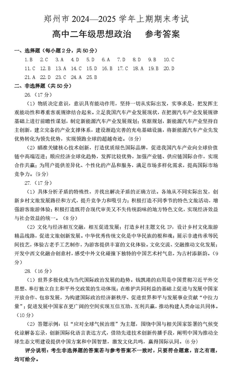 河南郑州2024-2025学年高二上学期期末政治试题及答案 时间:2025-01-27 河南 高中政治 四川遂宁2024-2025学年高二上学期期末政治考试已于近日开考,为方便考生考后及时查看考试情况,查漏补缺、弥补不足,本文整理了试题答案解析相关信息! 政治试题及答案解析