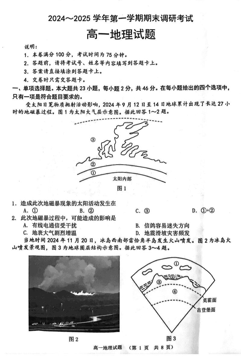 江苏连云港2024-2025学年高一上学期期末调研地理试题及答案 时间:2025-01-27 江苏 高中地理 江苏省连云港市2024-2025学年高一上学期期末调研地理考试已于近日开考,为方便考生考后及时查看考试情况,查漏补缺、弥补不足,本文整理了试题答案解析相关信息! 地理试题及答案解析