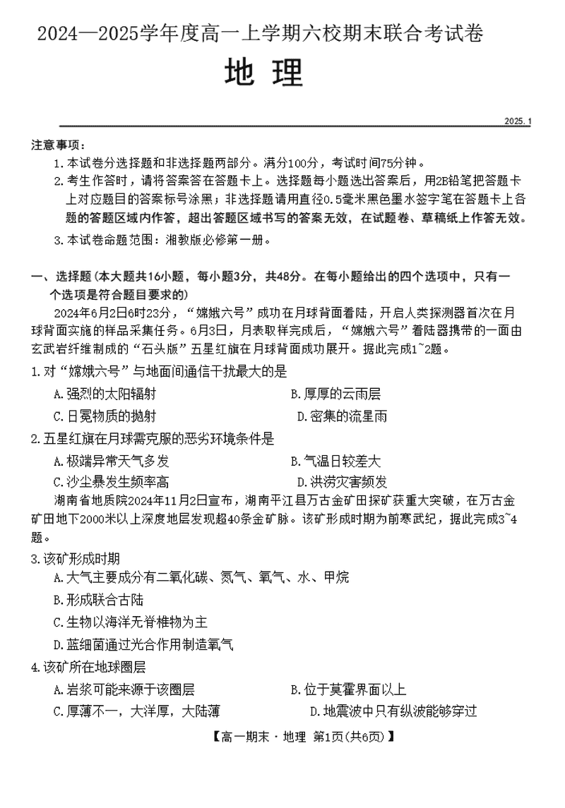 哈尔滨六校2024-2025学年高一上学期期末联考地理试题及答案 时间:2025-01-27 黑龙江 高中地理 哈尔滨市六校2024-2025学年高一上学期期末联考地理考试已于近日开考,为方便考生考后及时查看考试情况,查漏补缺、弥补不足,本文整理了试题答案解析相关信息! 地理试题及答案解析