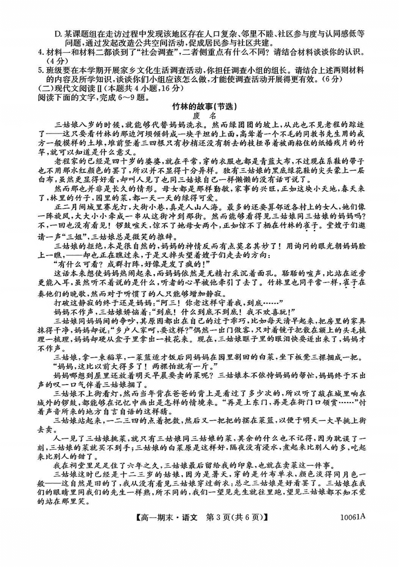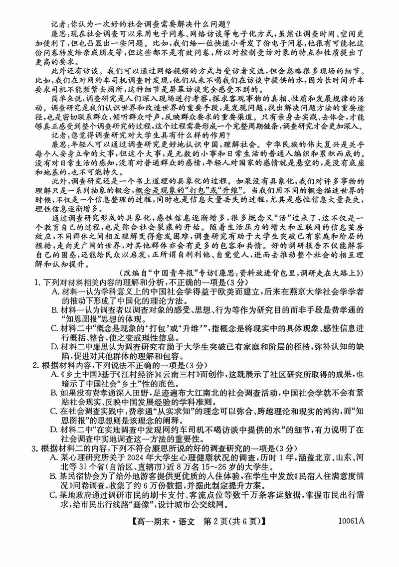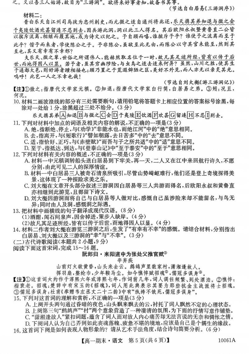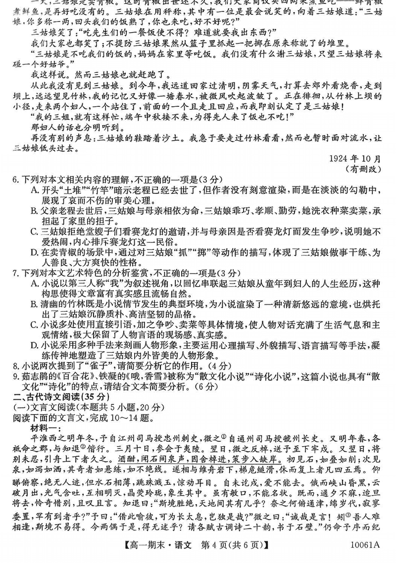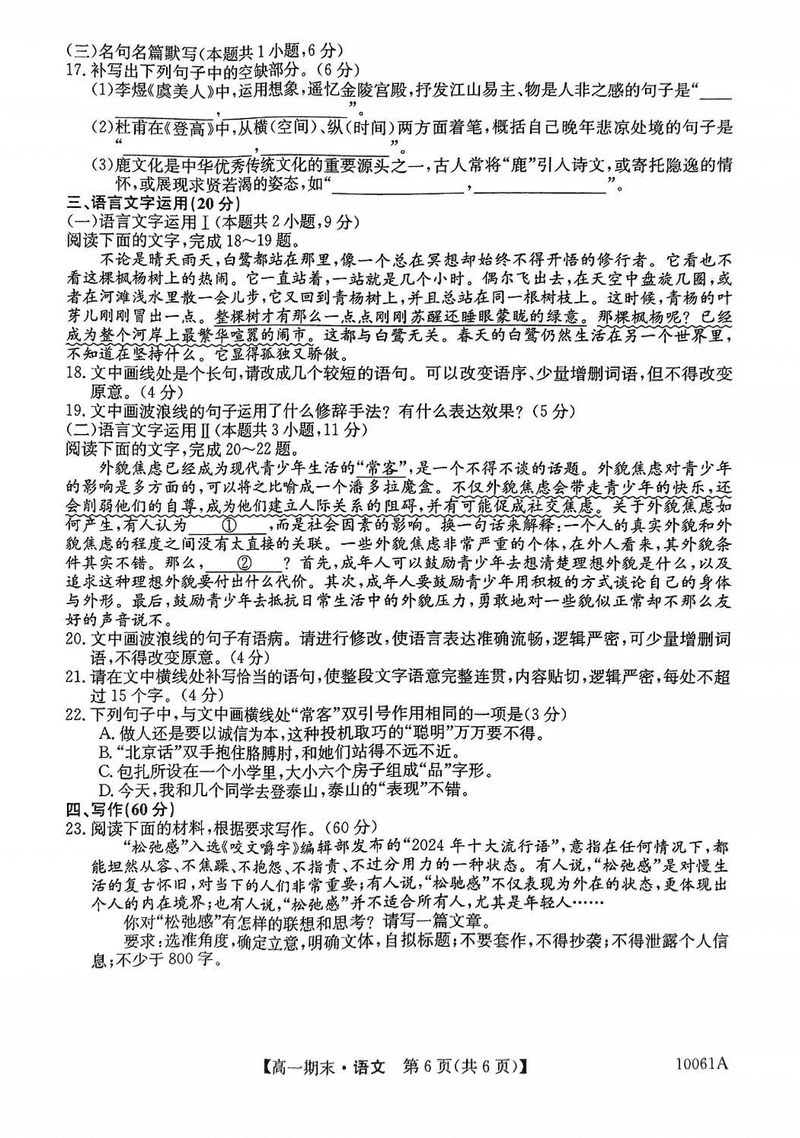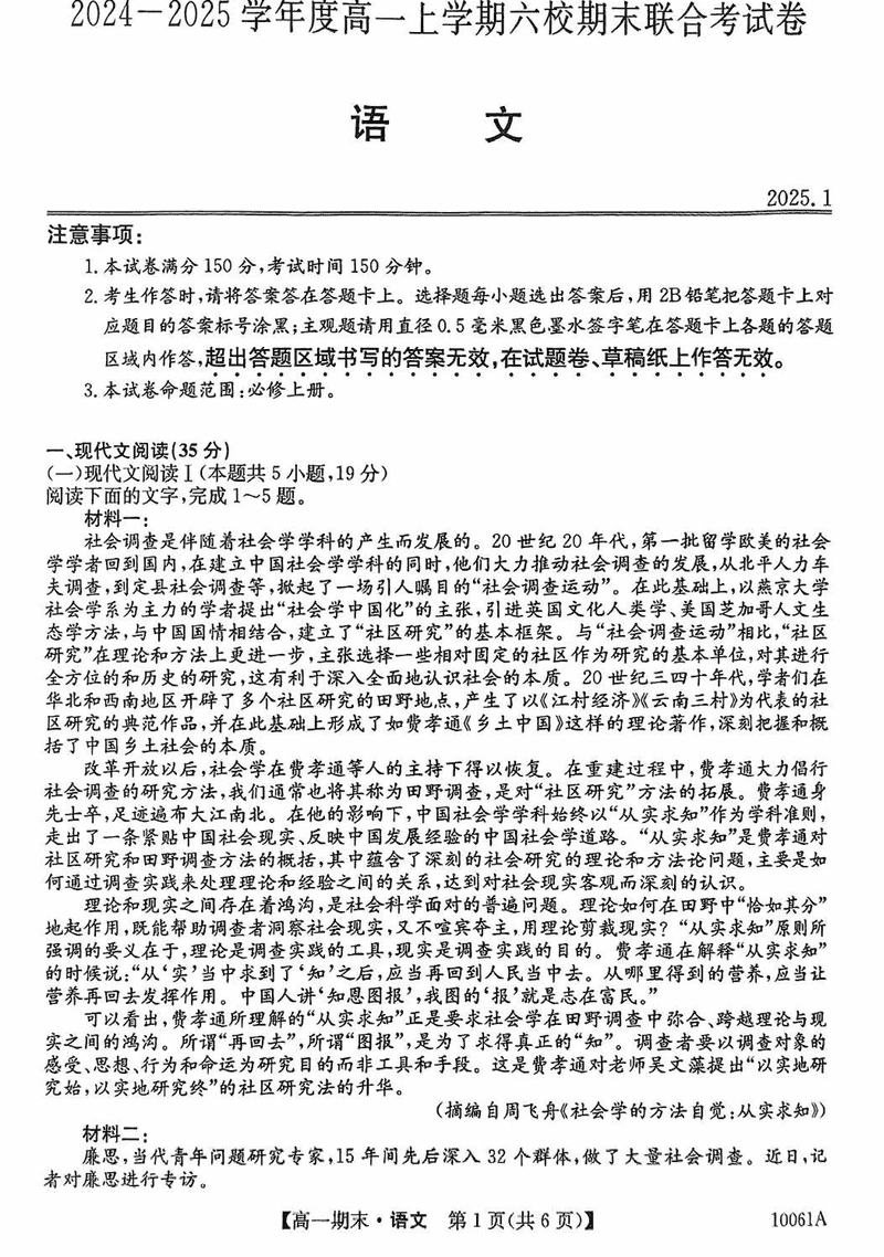 哈尔滨六校2024-2025学年高一上学期期末联考语文试题及答案 时间:2025-01-27 黑龙江 高中语文 哈尔滨市六校2024-2025学年高一上学期期末联考语文考试已于近日开考,为方便考生考后及时查看考试情况,查漏补缺、弥补不足,本文整理了试题答案解析相关信息! 语文试题及答案解析