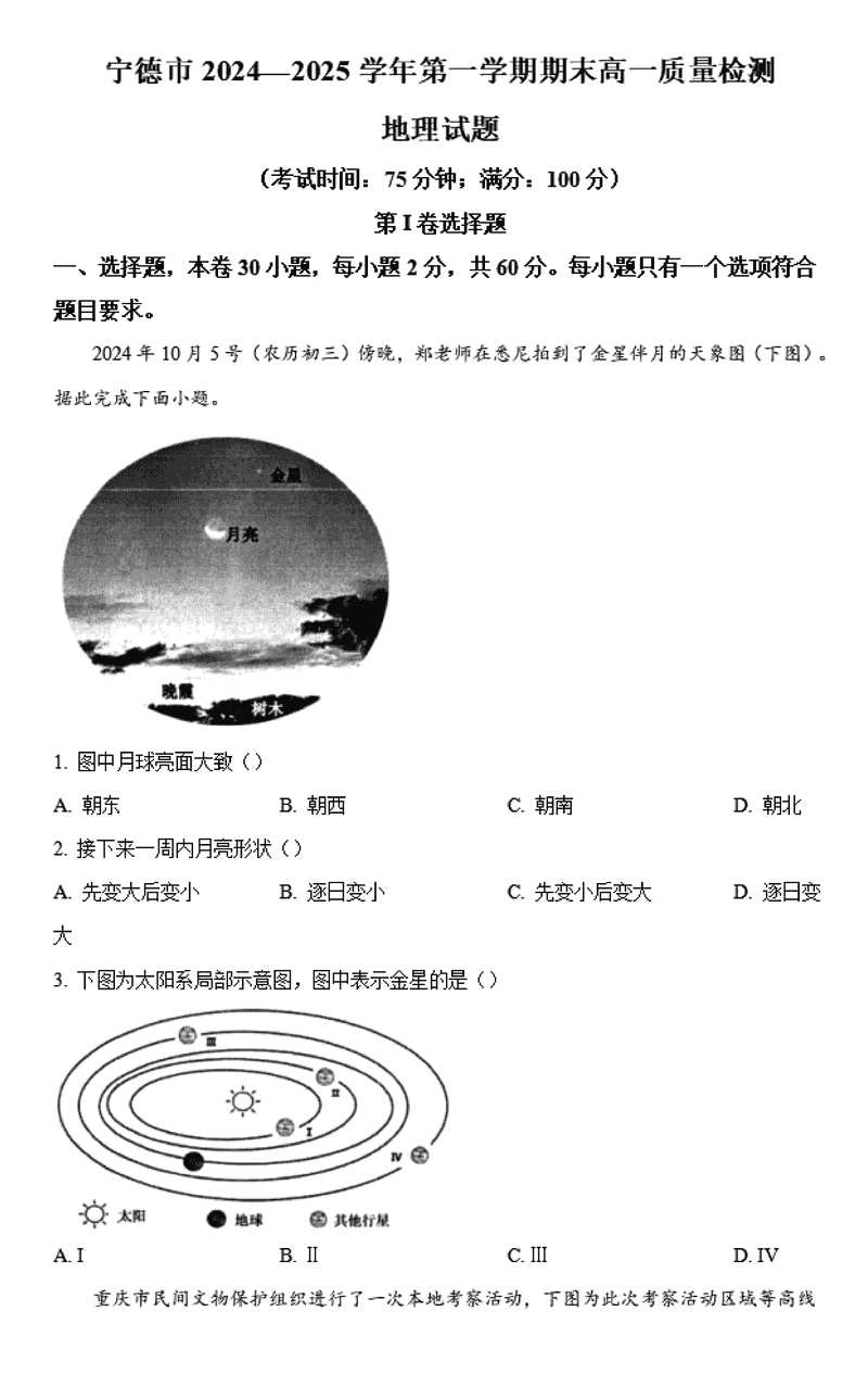 福建宁德2024-2025学年高一上学期1月期末地理试题及答案 时间:2025-01-27 福建 高中地理 福建宁德2024-2025学年高一上学期1月期末地理考试已于近日开考,为方便考生考后及时查看考试情况,查漏补缺、弥补不足,本文整理了试题答案解析相关信息! 地理试题及答案解析
