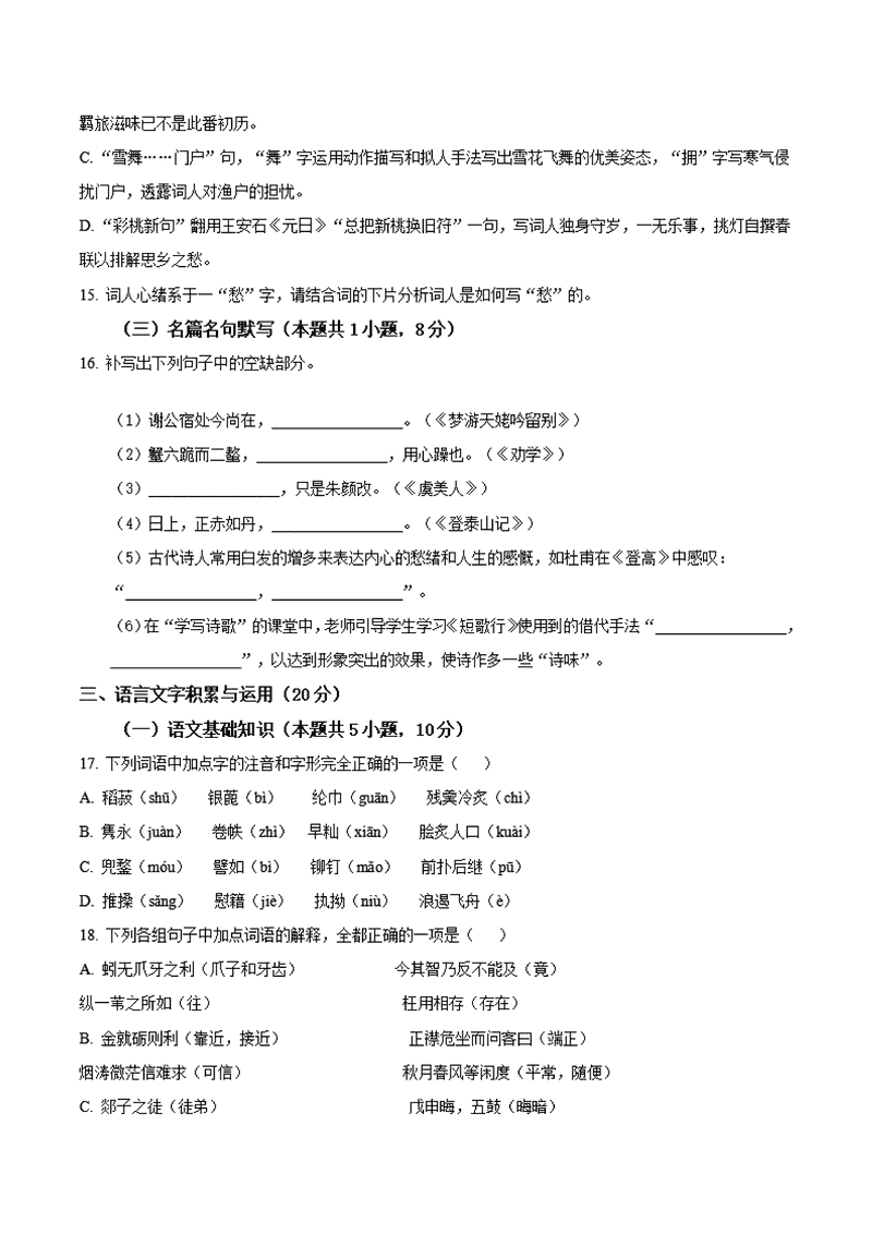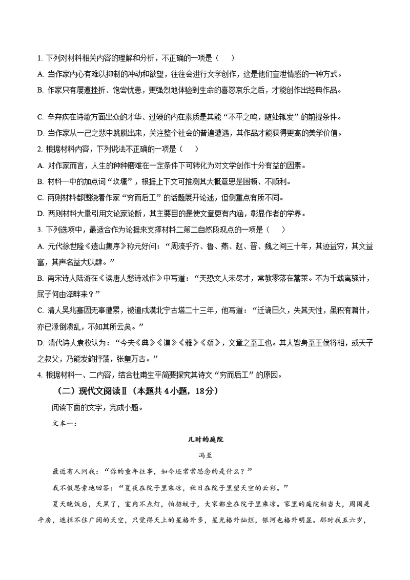 福建宁德2024-2025学年高一上学期1月期末语文试题及答案 时间:2025-01-27 福建 高中语文 福建宁德2024-2025学年高一上学期1月期末语文考试已于近日开考,为方便考生考后及时查看考试情况,查漏补缺、弥补不足,本文整理了试题答案解析相关信息! 语文试题及答案解析