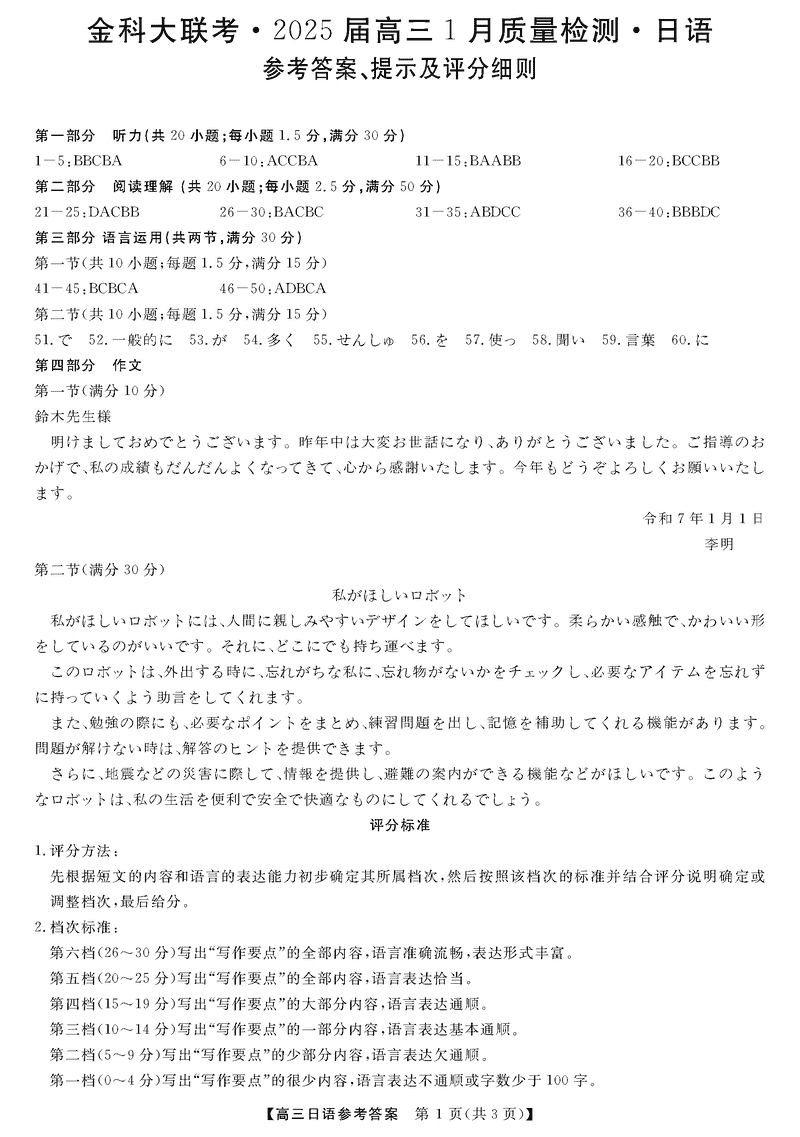 山西省金科大联考2025届高三1月质量检测日语试题及答案 时间:2025-01-27 山西 高中英语 山西省金科大联考2025届高三1月质量检测日语考试已于近日开考,为方便考生考后及时查看考试情况,查漏补缺、弥补不足,本文整理了试题答案解析相关信息! 日语试题及答案解析