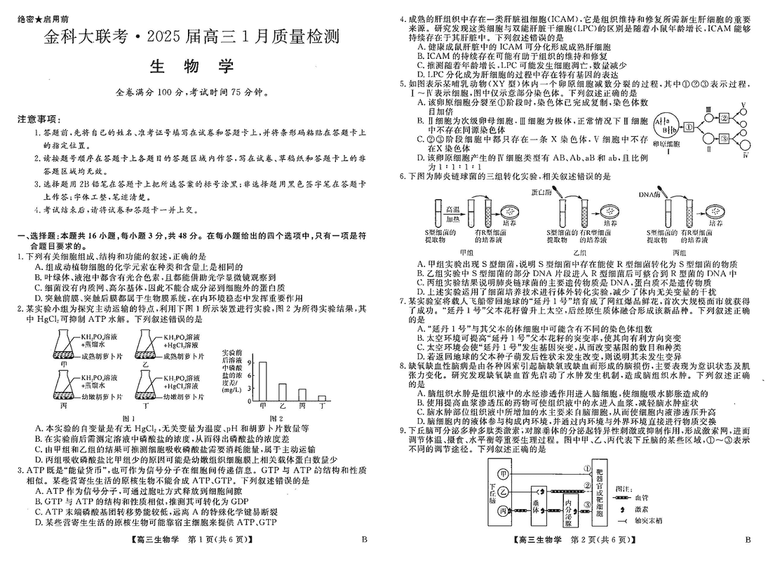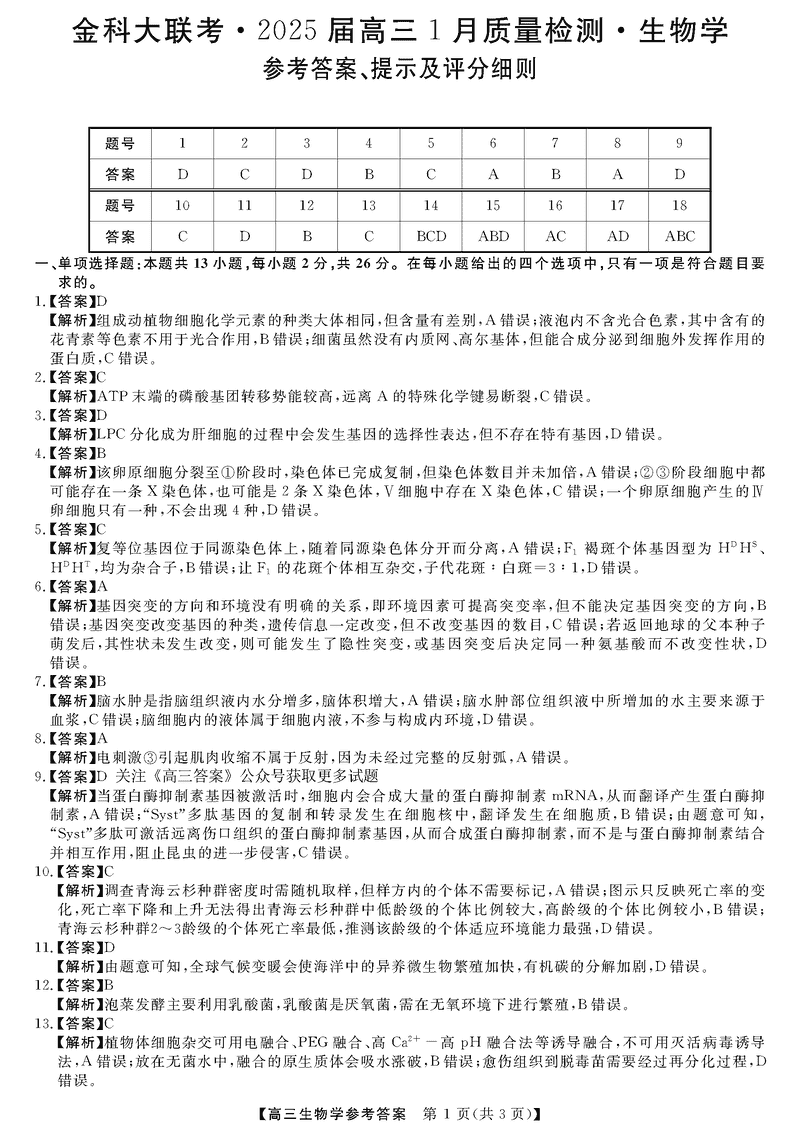 山西省金科大联考2025届高三1月质量检测生物试题及答案 时间:2025-01-27 山西 高中生物 山西省金科大联考2025届高三1月质量检测生物考试已于近日开考,为方便考生考后及时查看考试情况,查漏补缺、弥补不足,本文整理了试题答案解析相关信息! 生物试题及答案解析