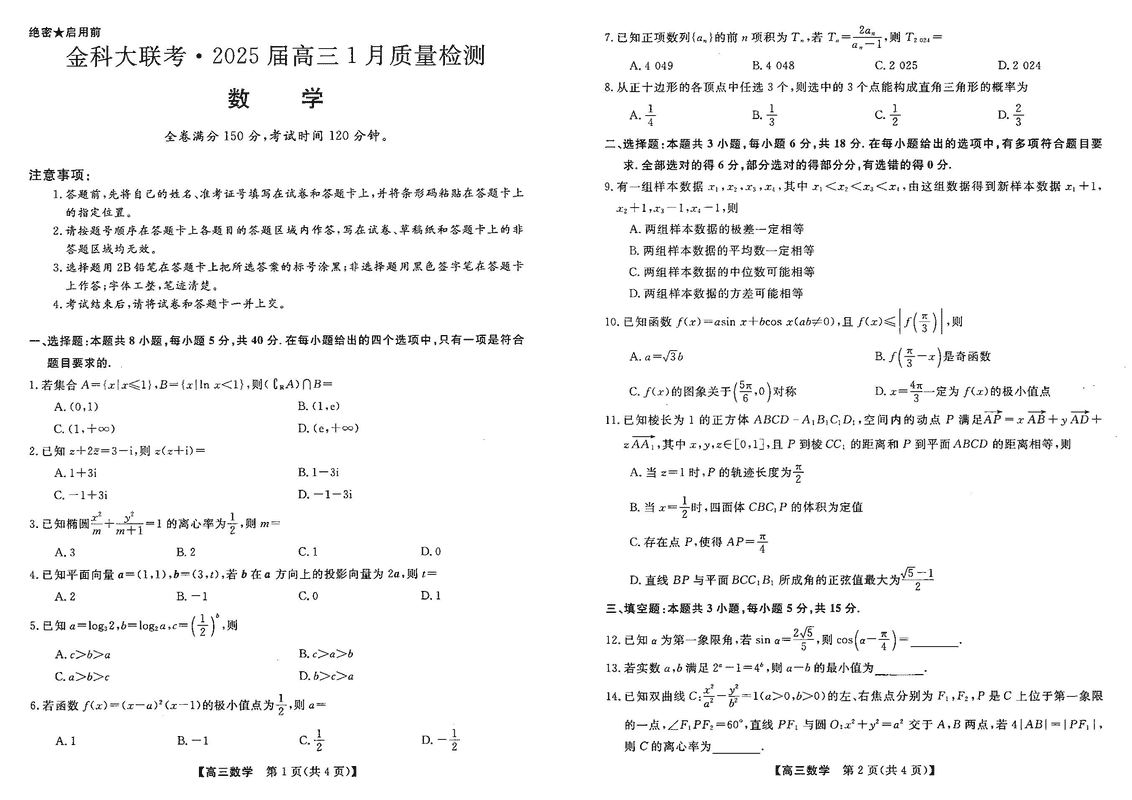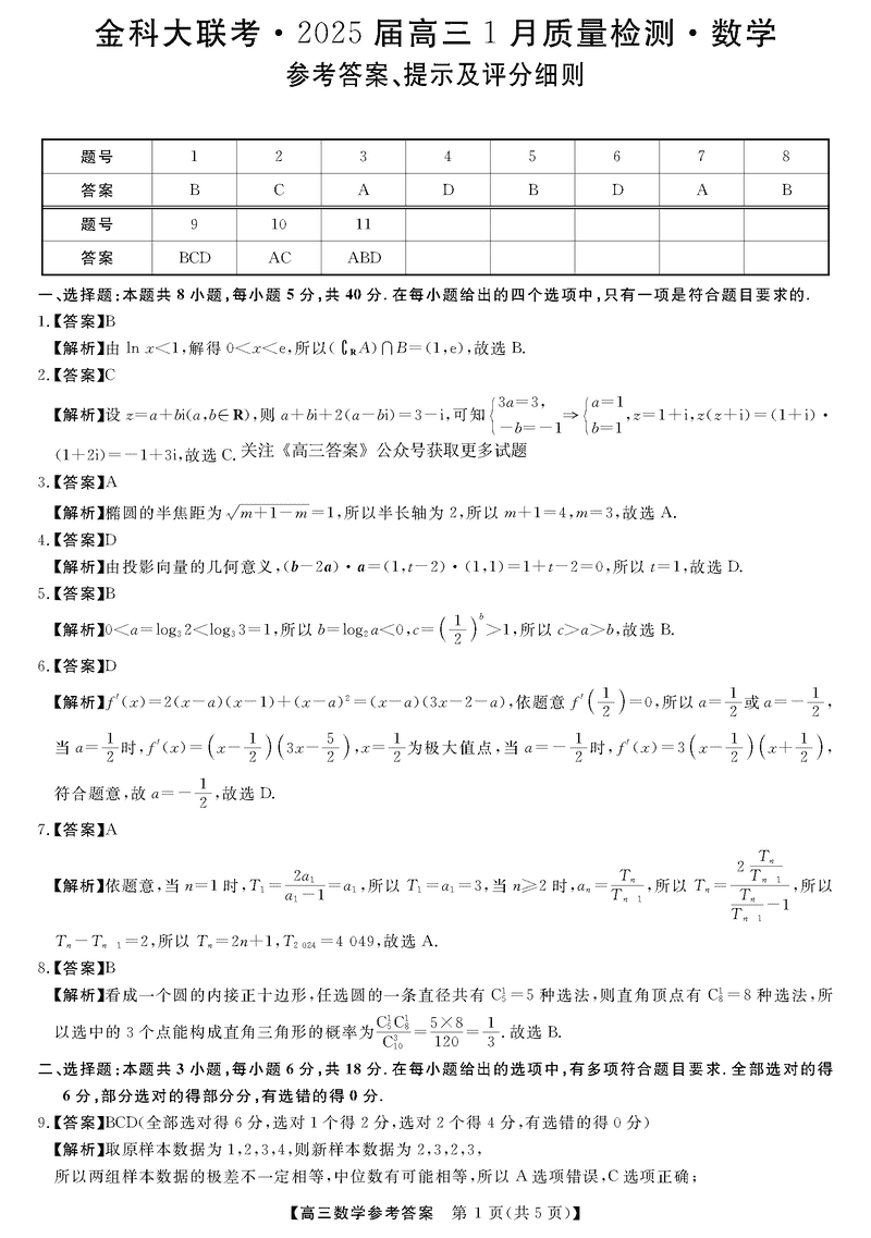山西省金科大联考2025届高三1月质量检测数学试题及答案 时间:2025-01-27 山西 高中数学 山西省金科大联考2025届高三1月质量检测数学考试已于近日开考,为方便考生考后及时查看考试情况,查漏补缺、弥补不足,本文整理了试题答案解析相关信息! 数学试题及答案解析