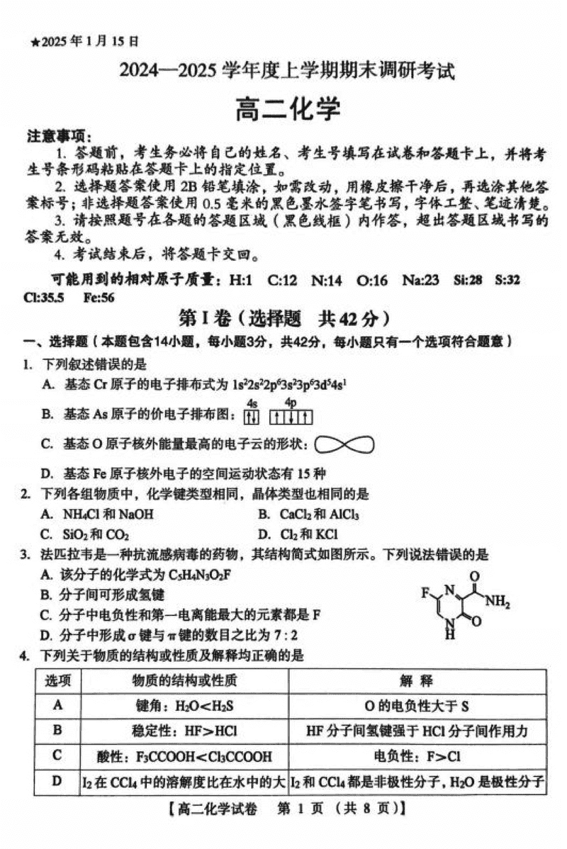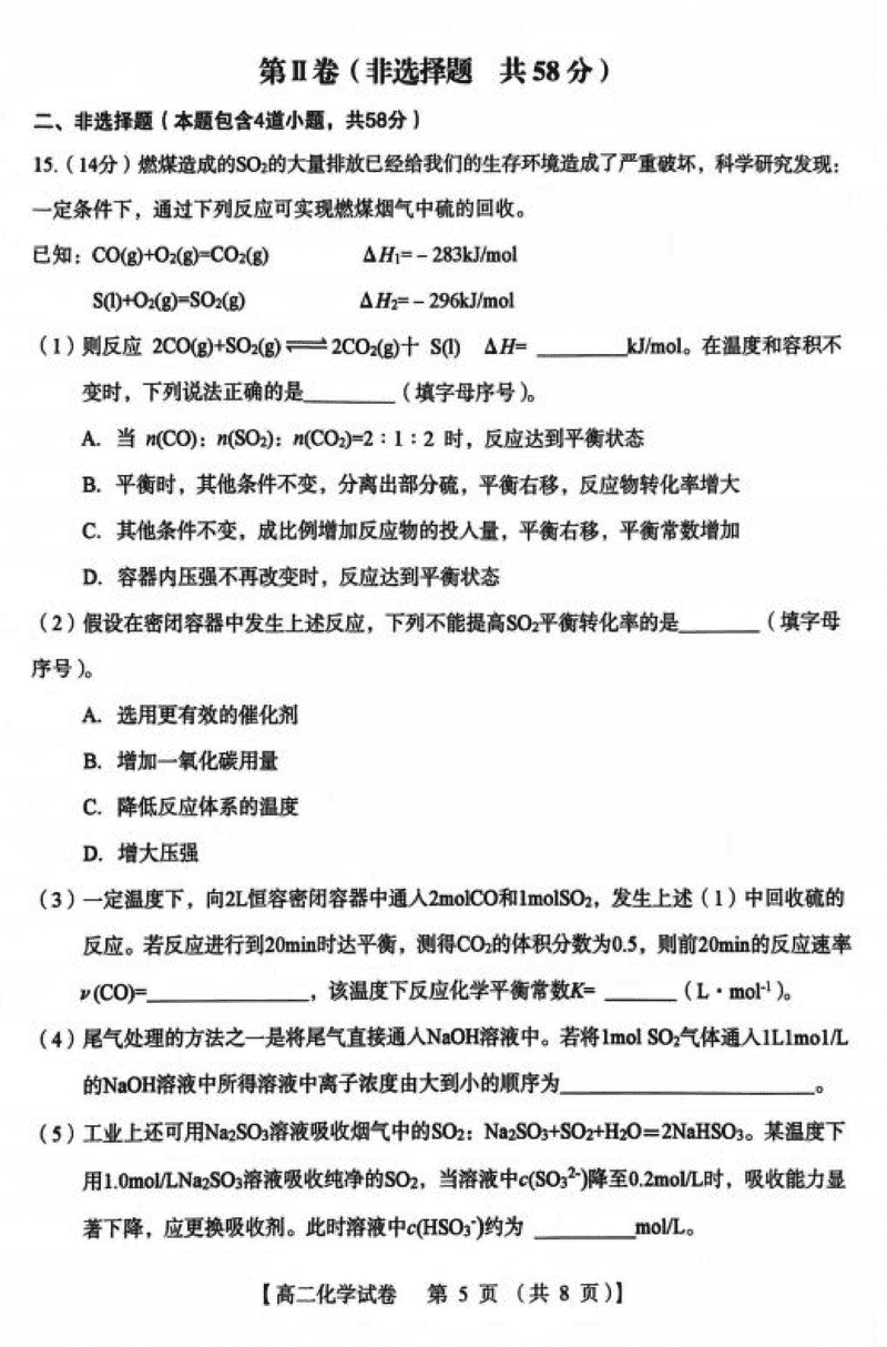 河南三门峡2024-2025学年高二上学期1月期末化学试题及答案 时间:2025-01-27 河南 高中化学 河南三门峡2024-2025学年高二上学期1月期末化学考试已于近日开考,为方便考生考后及时查看考试情况,查漏补缺、弥补不足,本文整理了试题答案解析相关信息! 化学试题及答案解析
