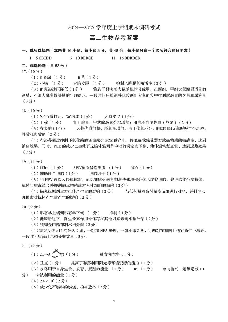 河南三门峡2024-2025学年高二上学期1月期末生物试题及答案 时间:2025-01-27 河南 高中生物 河南三门峡2024-2025学年高二上学期1月期末生物考试已于近日开考,为方便考生考后及时查看考试情况,查漏补缺、弥补不足,本文整理了试题答案解析相关信息! 生物试题及答案解析