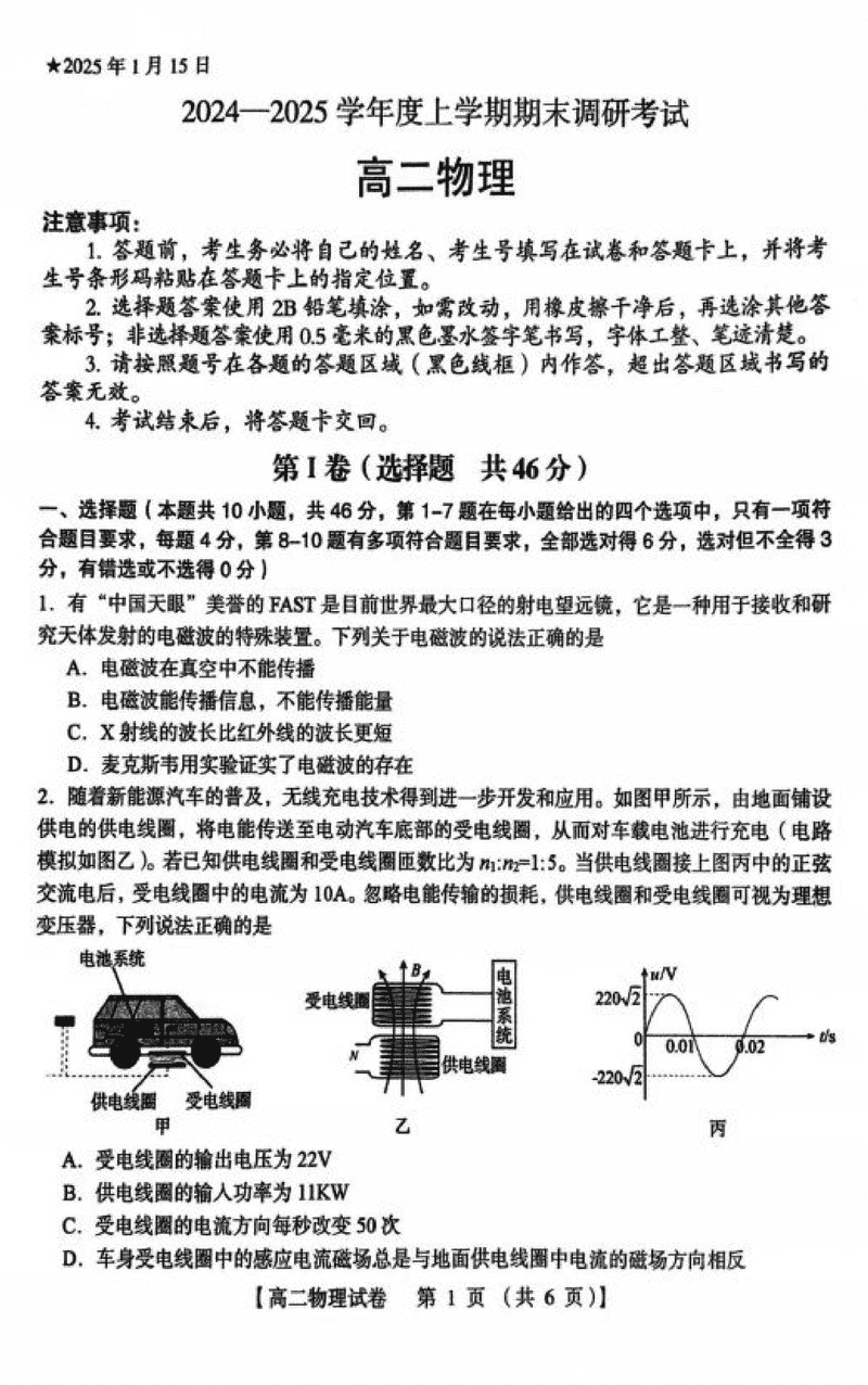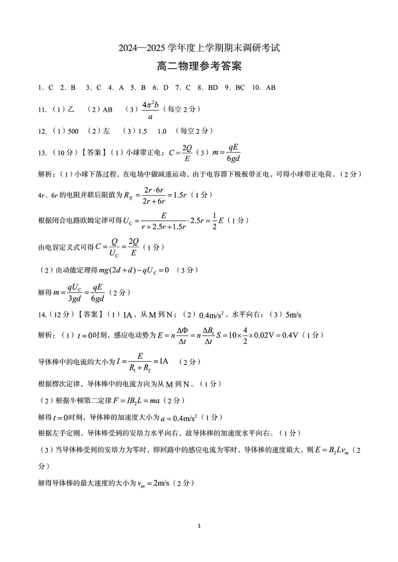 河南三门峡2024-2025学年高二上学期1月期末物理试题及答案 时间:2025-01-27 河南 高中物理 河南三门峡2024-2025学年高二上学期1月期末物理考试已于近日开考,为方便考生考后及时查看考试情况,查漏补缺、弥补不足,本文整理了试题答案解析相关信息! 物理试题及答案解析