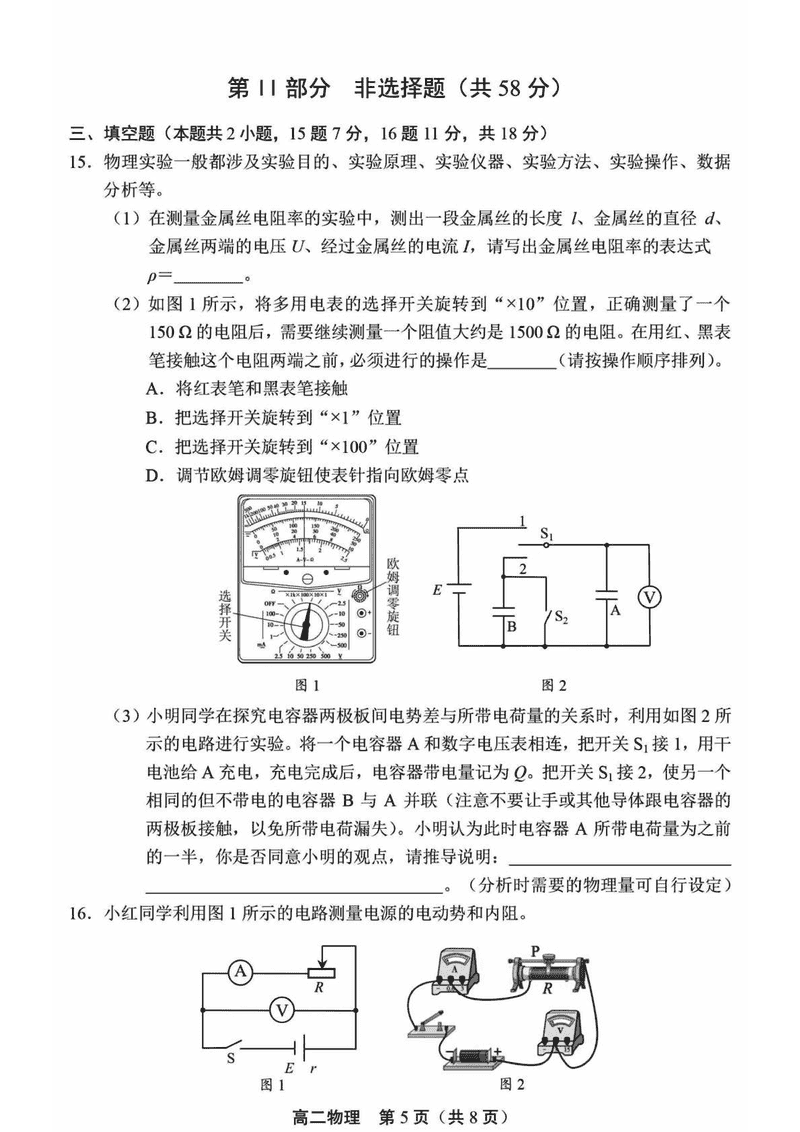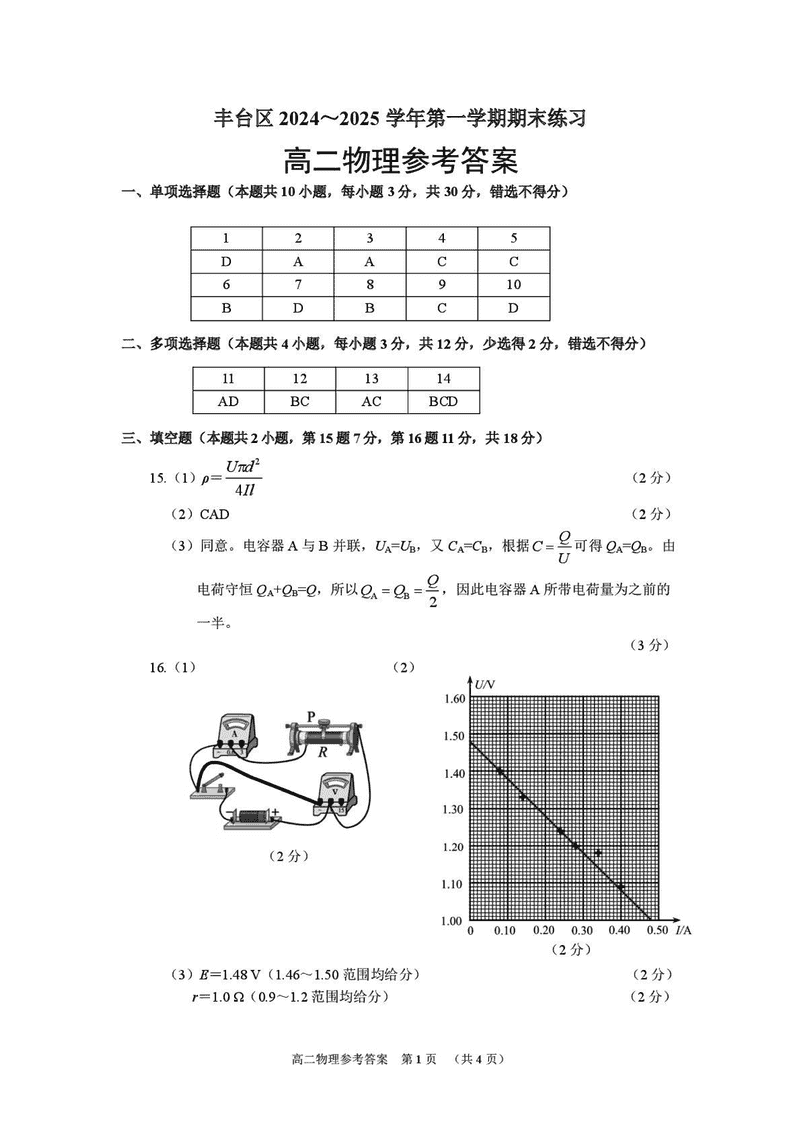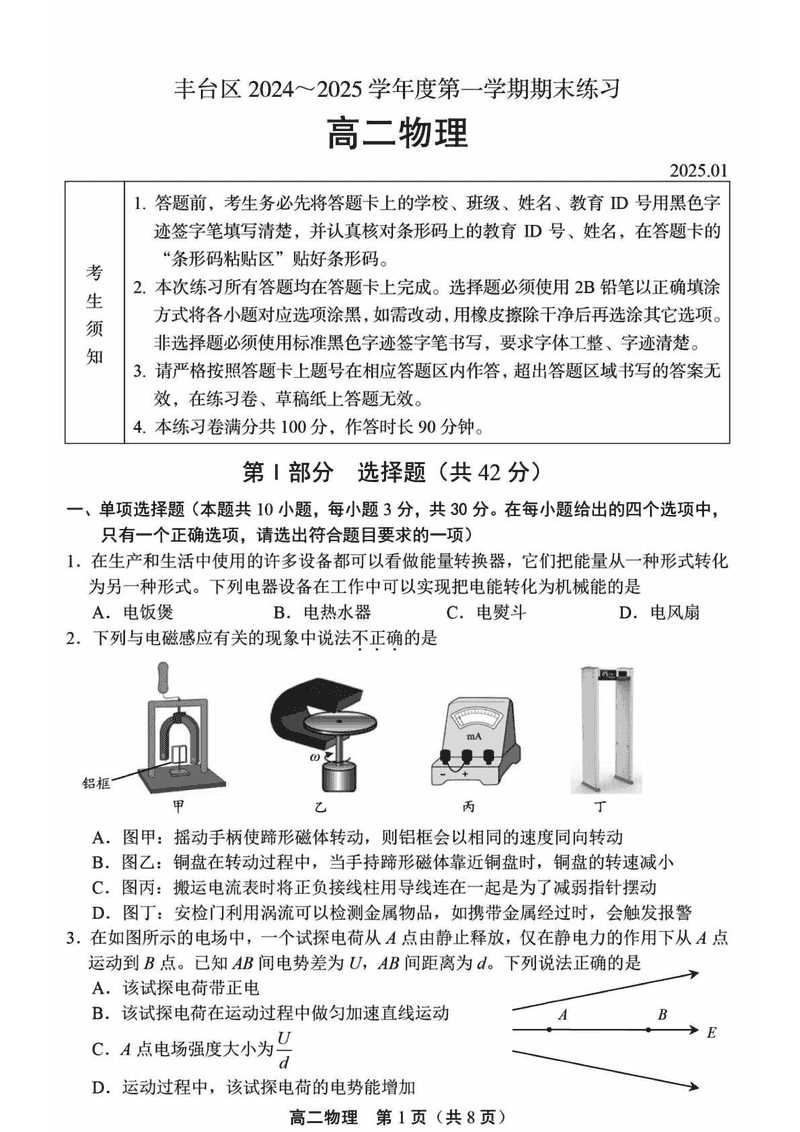 北京市丰台区2024-2025学年高二上学期期末物理考试已于近日开考,为方便考生考后及时查看考试情况,查漏补缺、弥补不足,本文整理了试题答案解析相关信息!