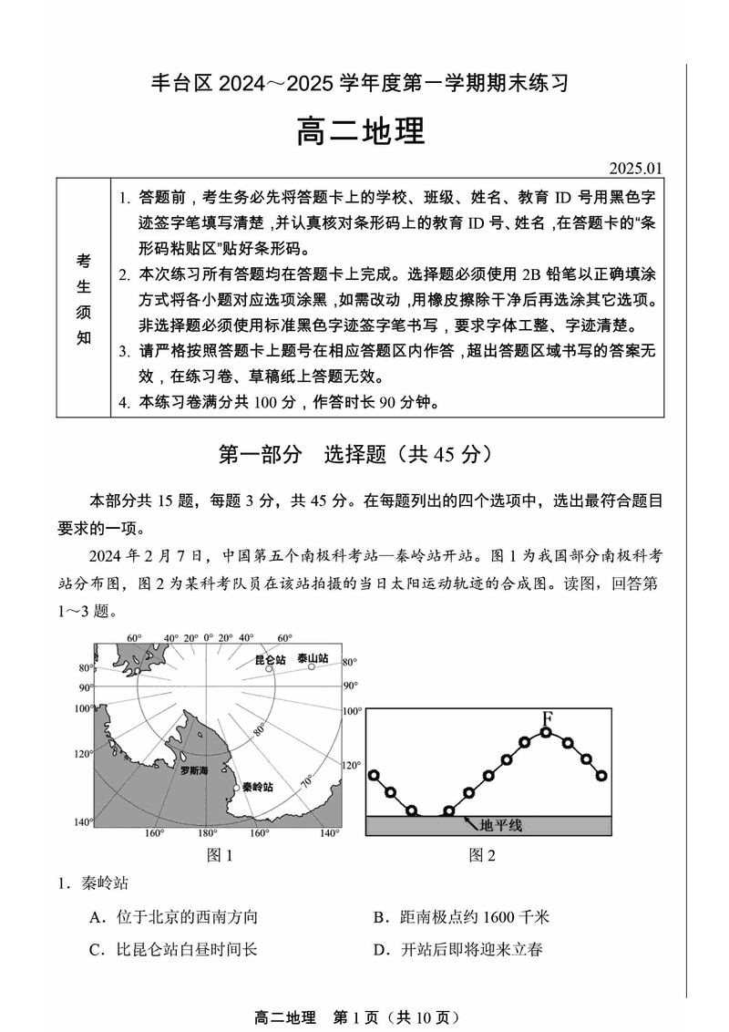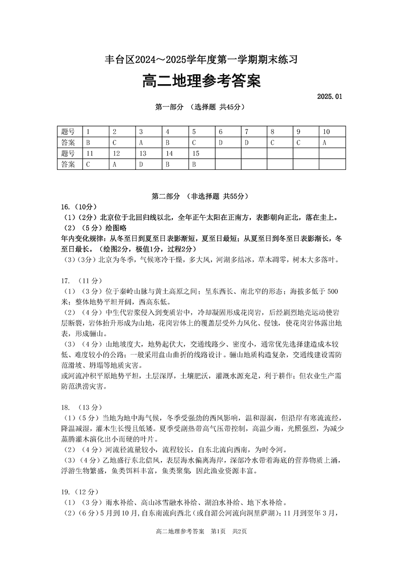 北京市丰台区2024-2025学年高二上学期期末地理试题及答案 时间:2025-01-27 北京 高中地理 北京市丰台区2024-2025学年高二上学期期末地理考试已于近日开考,为方便考生考后及时查看考试情况,查漏补缺、弥补不足,本文整理了试题答案解析相关信息! 地理试题及答案解析