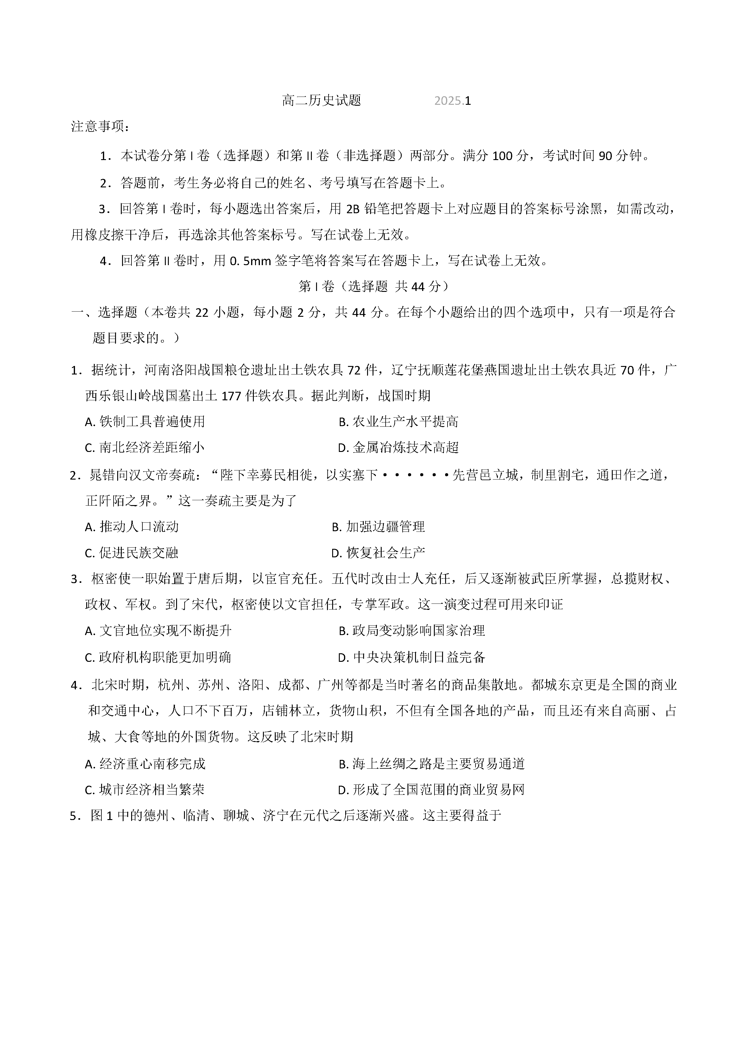 山东滨州2024-2025学年高二上学期期末历史试题及答案 时间:2025-01-27 山东 高中历史 山东省滨州市2024-2025学年高二上学期期末历史考试已于近日开考,为方便考生考后及时查看考试情况,查漏补缺、弥补不足,本文整理了试题答案解析相关信息! 历史试题及答案解析