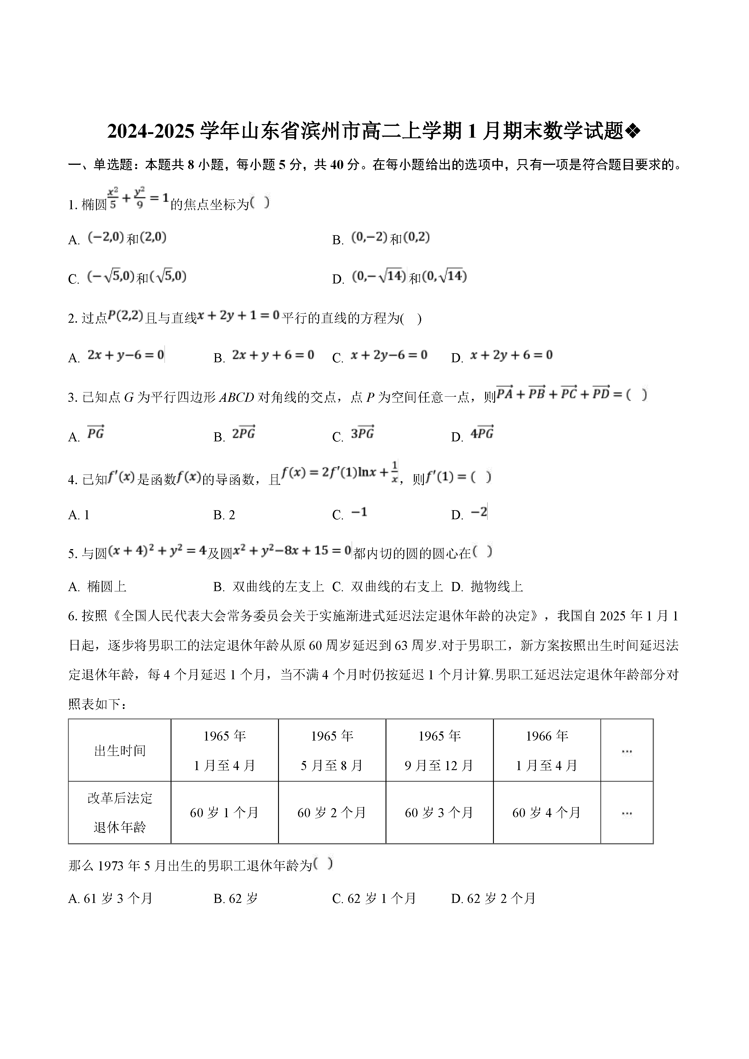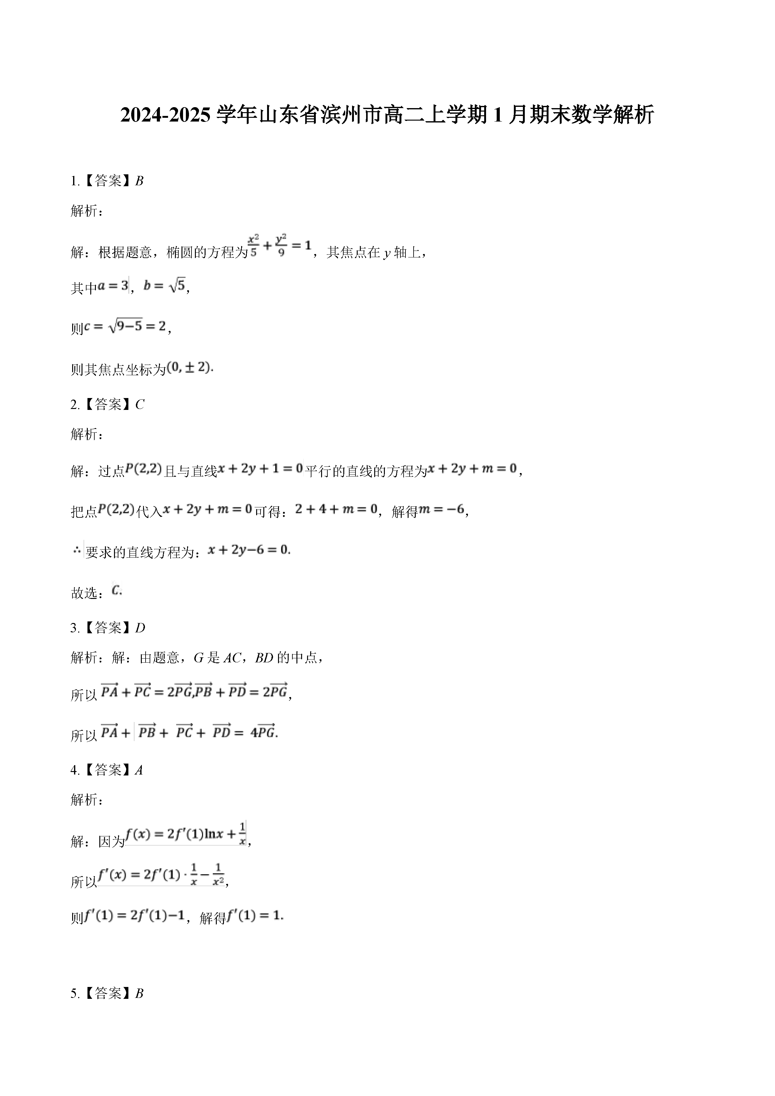 山东滨州2024-2025学年高二上学期期末数学试题及答案 时间:2025-01-27 山东 高中数学 山东省滨州市2024-2025学年高二上学期期末数学考试已于近日开考,为方便考生考后及时查看考试情况,查漏补缺、弥补不足,本文整理了试题答案解析相关信息! 数学试题及答案解析