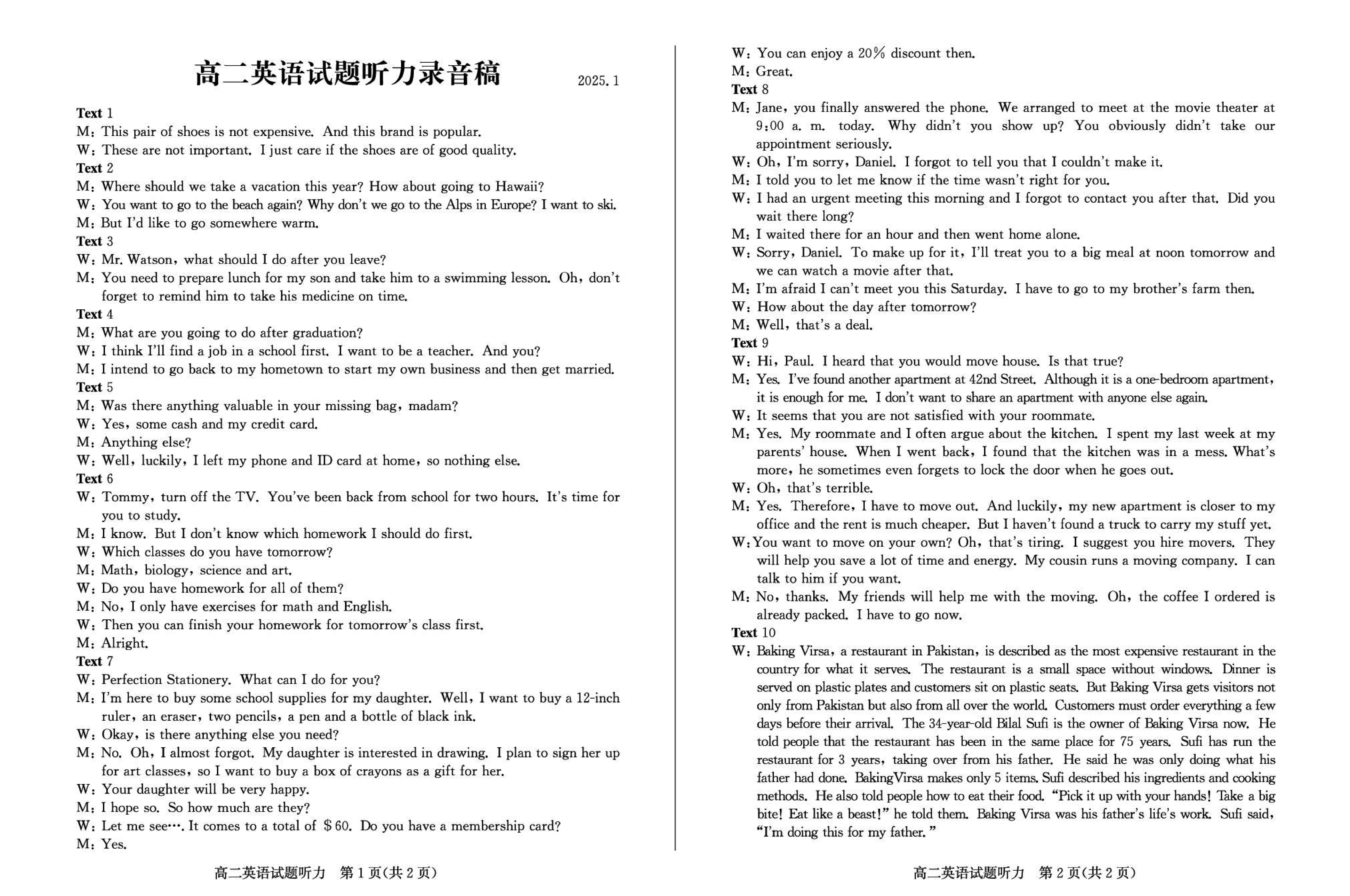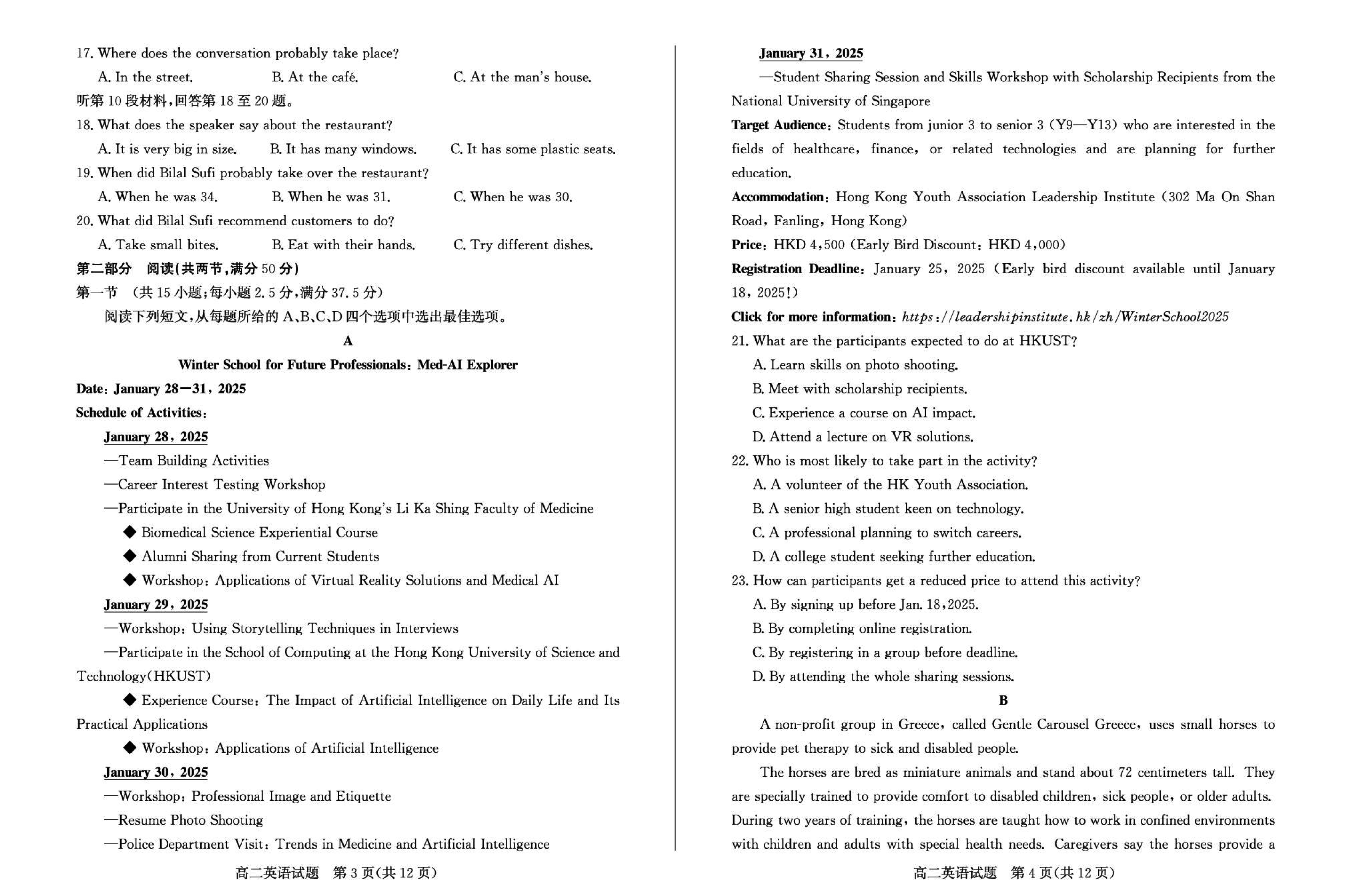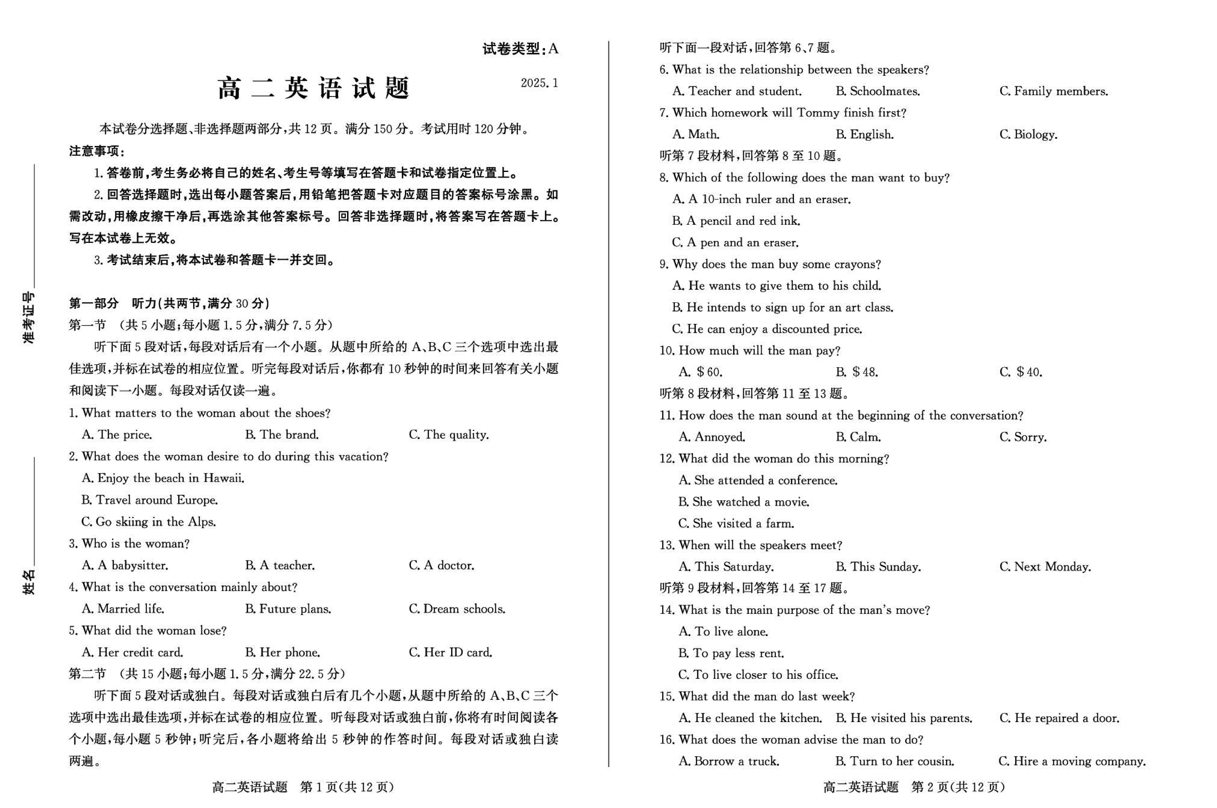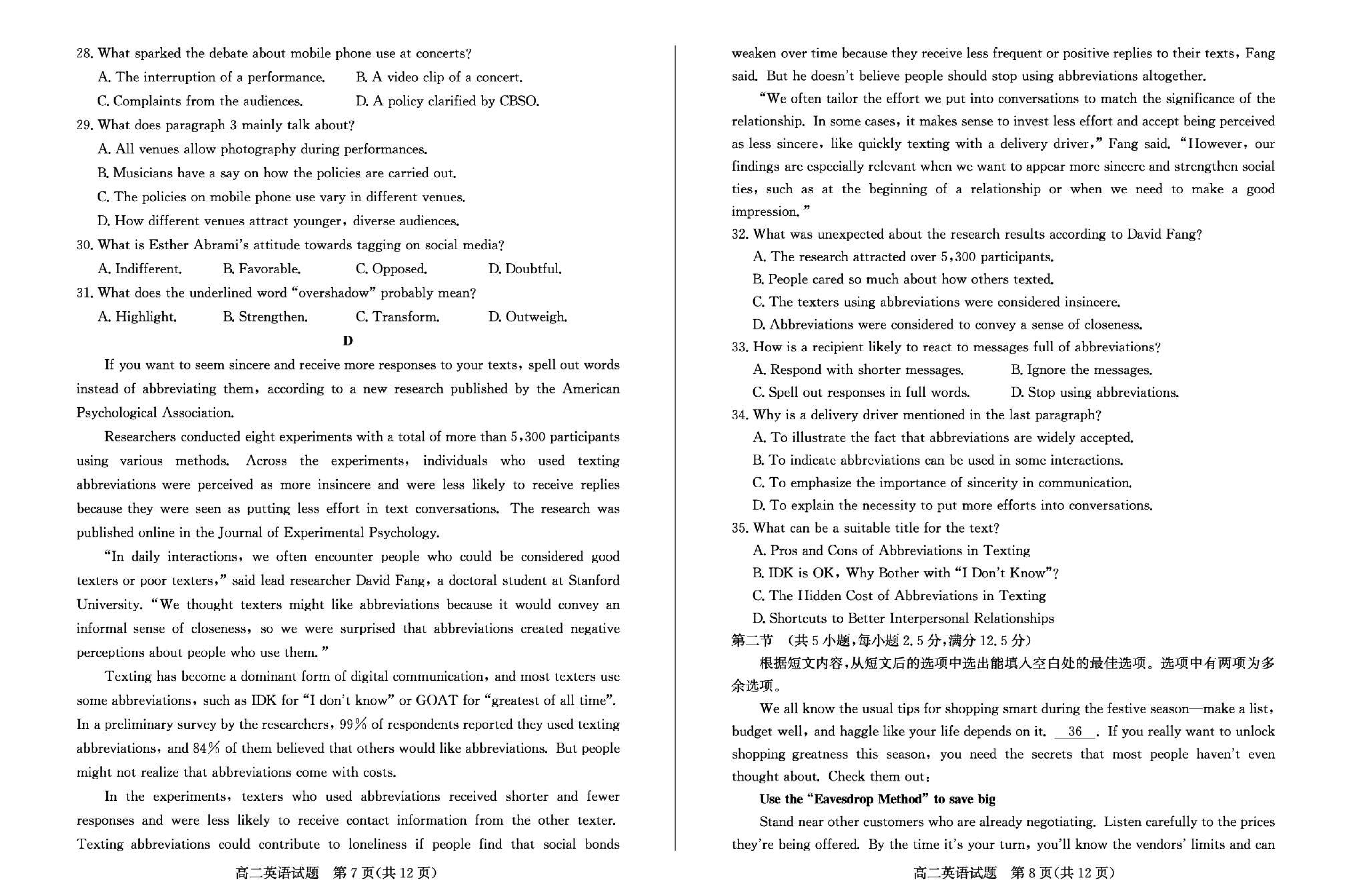 山东滨州2024-2025学年高二上学期期末英语试题及答案 时间:2025-01-27 山东 高中英语 山东省滨州市2024-2025学年高二上学期期末英语考试已于近日开考,为方便考生考后及时查看考试情况,查漏补缺、弥补不足,本文整理了试题答案解析相关信息! 英语试题及答案解析