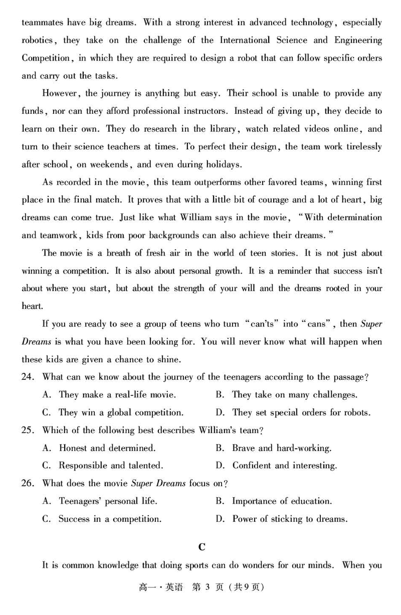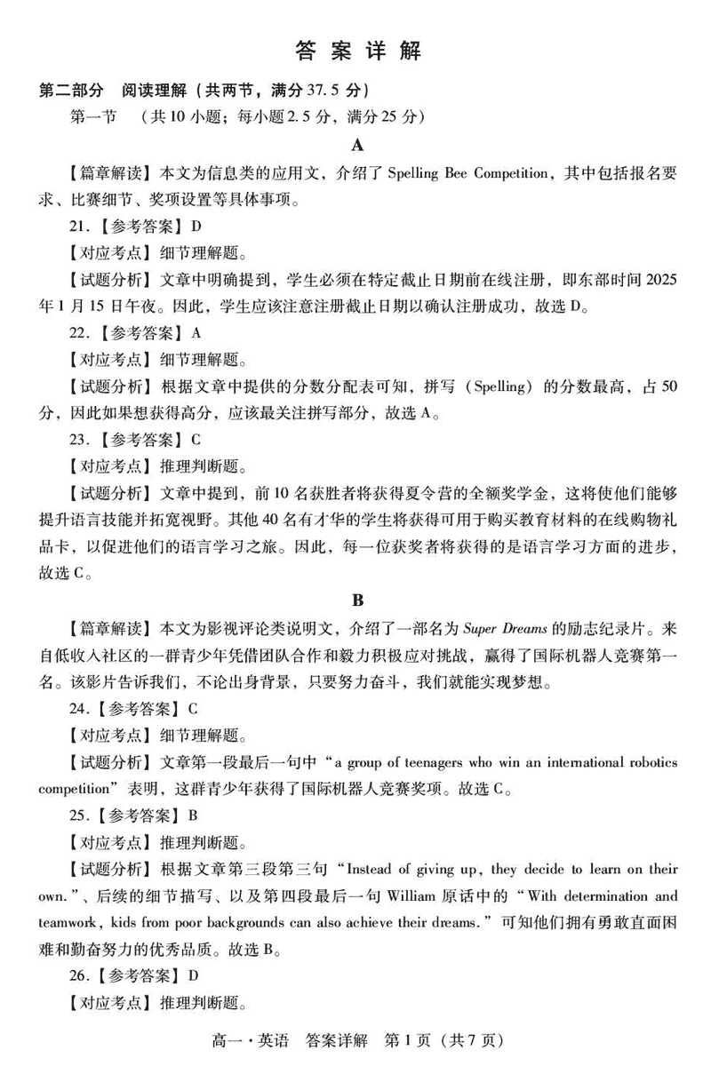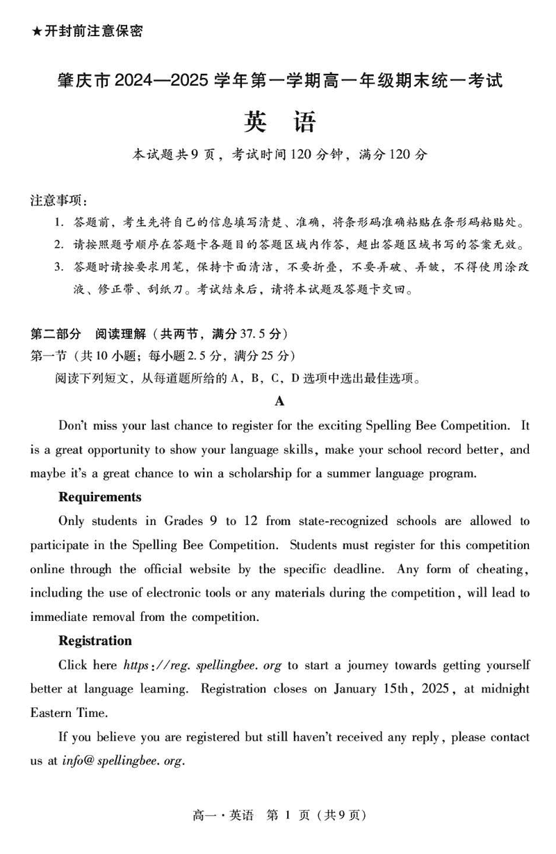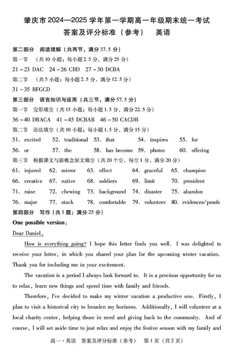 广东肇庆2024-2025学年高一上学期期末英语试题及答案 时间:2025-01-27 广东 高中英语 广东省肇庆市2024-2025学年高一上学期期末英语考试已于近日开考,为方便考生考后及时查看考试情况,查漏补缺、弥补不足,本文整理了试题答案解析相关信息! 英语试题及答案解析