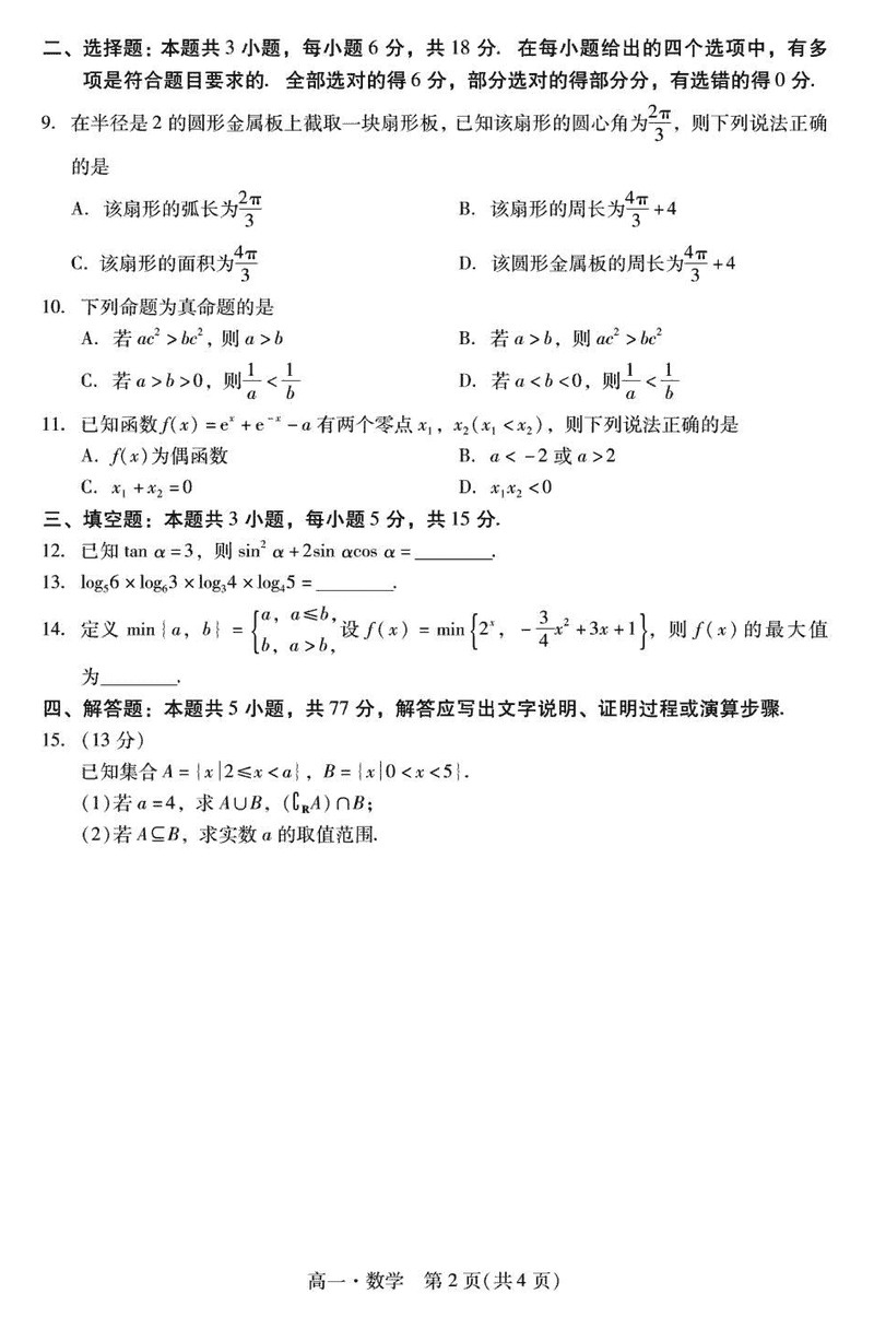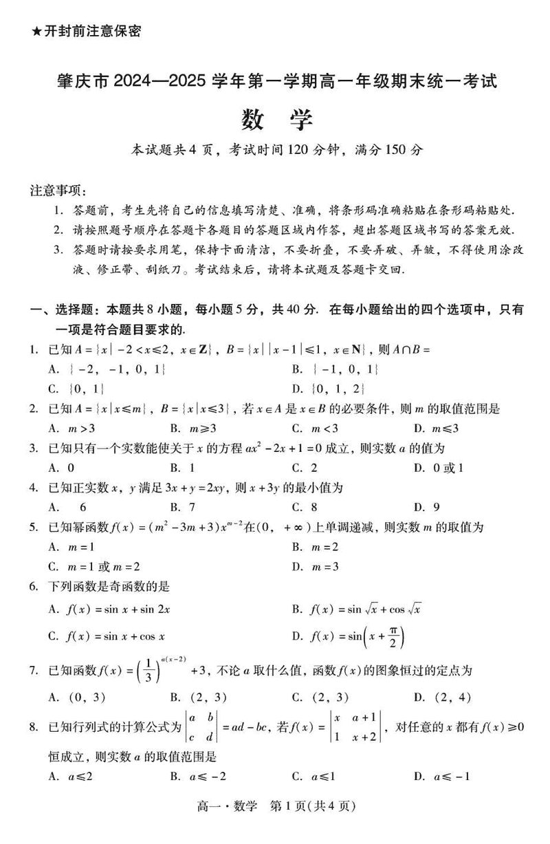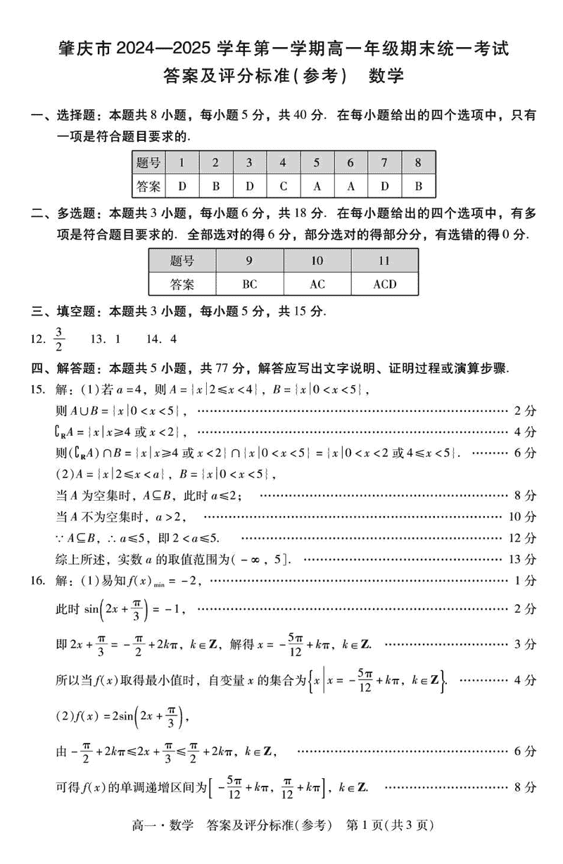 广东肇庆2024-2025学年高一上学期期末数学试题及答案 时间:2025-01-27 广东 高中数学 广东省肇庆市2024-2025学年高一上学期期末数学考试已于近日开考,为方便考生考后及时查看考试情况,查漏补缺、弥补不足,本文整理了试题答案解析相关信息! 数学试题及答案解析