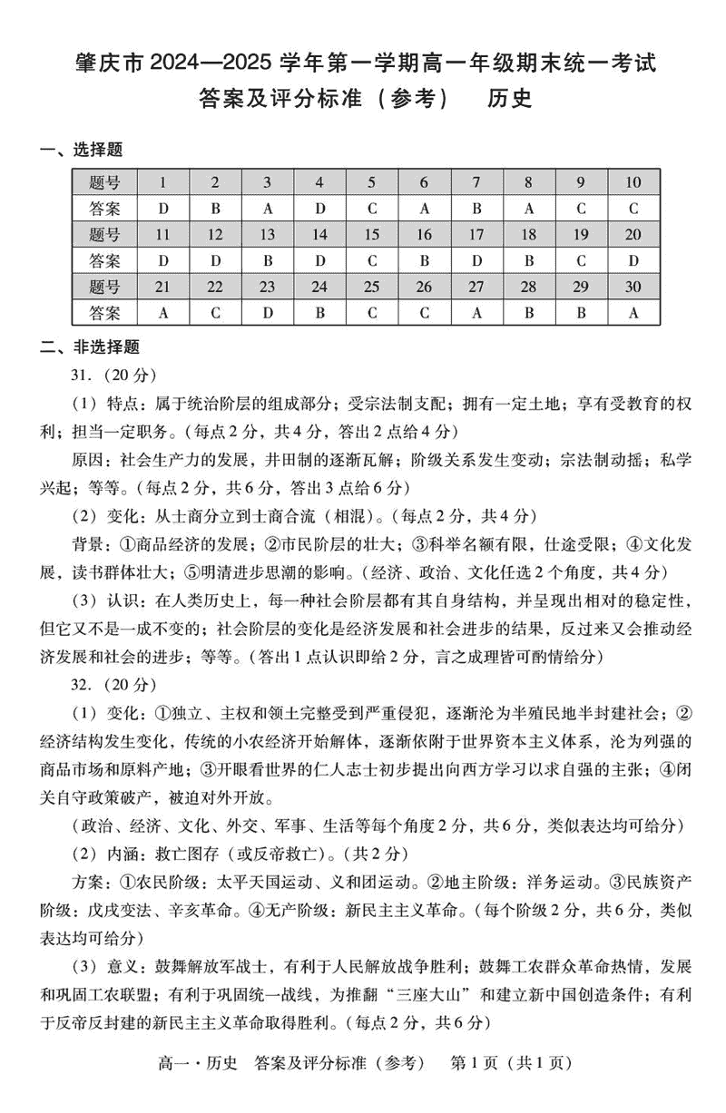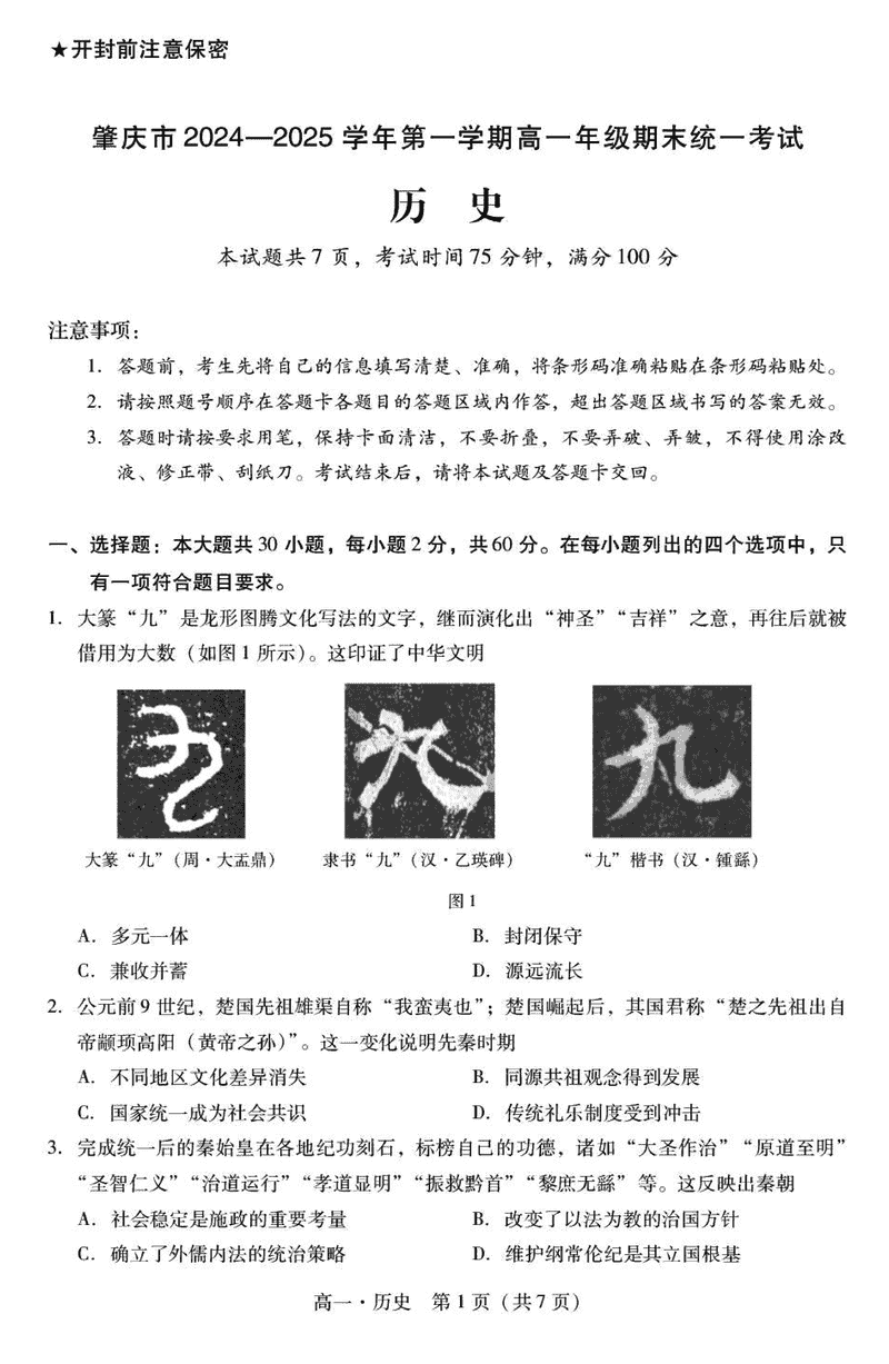 广东肇庆2024-2025学年高一上学期期末历史试题及答案 时间:2025-01-27 广东 高中历史 广东省肇庆市2024-2025学年高一上学期期末历史考试已于近日开考,为方便考生考后及时查看考试情况,查漏补缺、弥补不足,本文整理了试题答案解析相关信息! 历史试题及答案解析