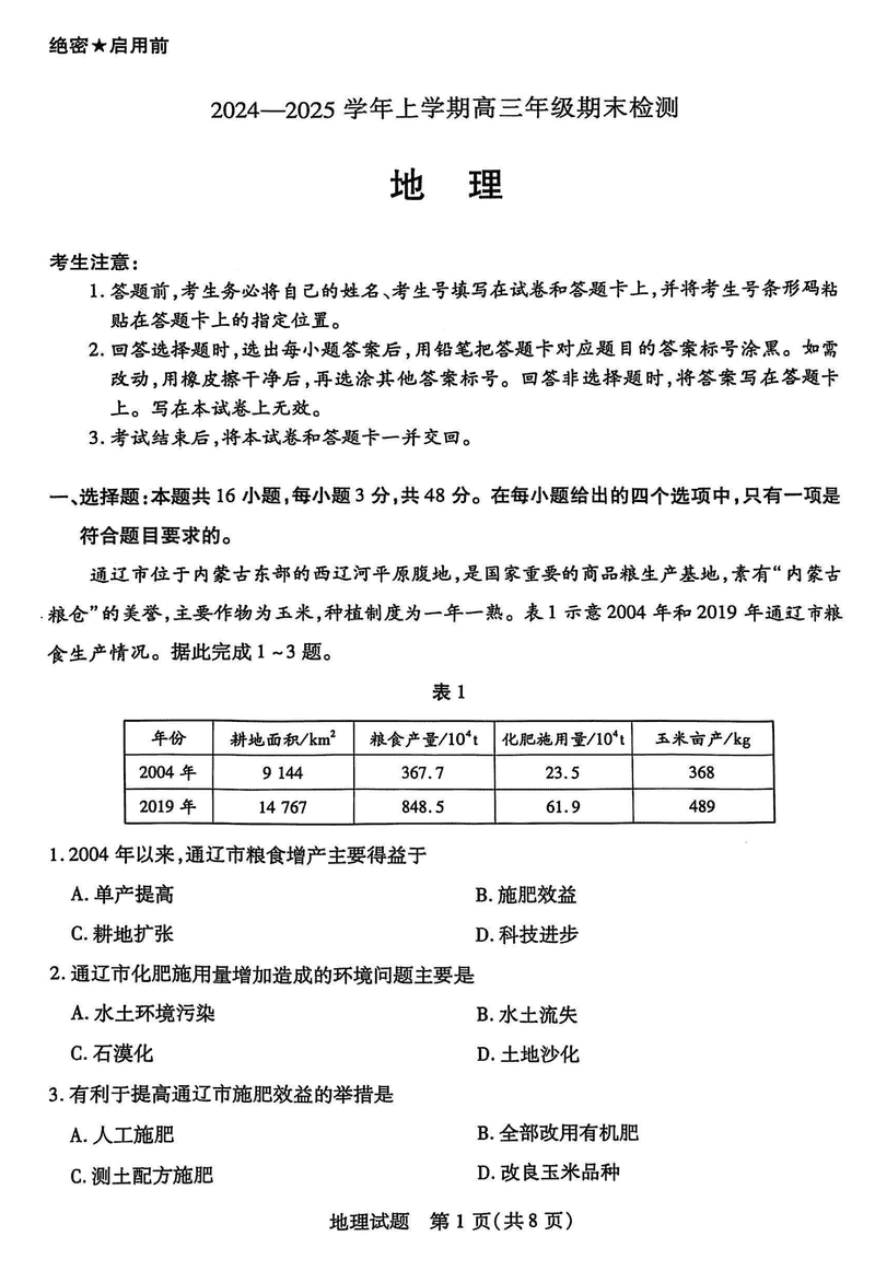 安徽天一大联考2025届高三上学期1月期末检测地理考试已于近日开考,为方便考生考后及时查看考试情况,查漏补缺、弥补不足,本文整理了试题答案解析相关信息!