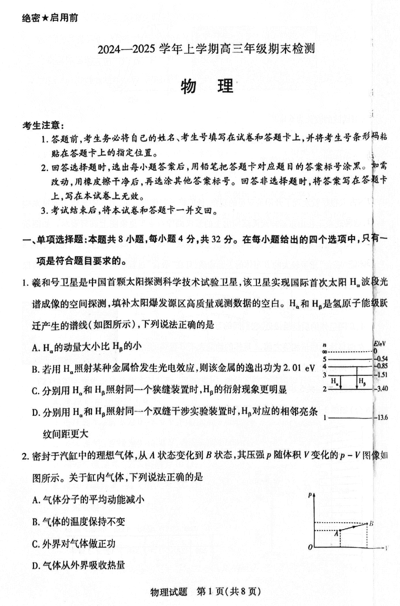 安徽天一大联考2025届高三上学期1月期末检测物理考试已于近日开考,为方便考生考后及时查看考试情况,查漏补缺、弥补不足,本文整理了试题答案解析相关信息!