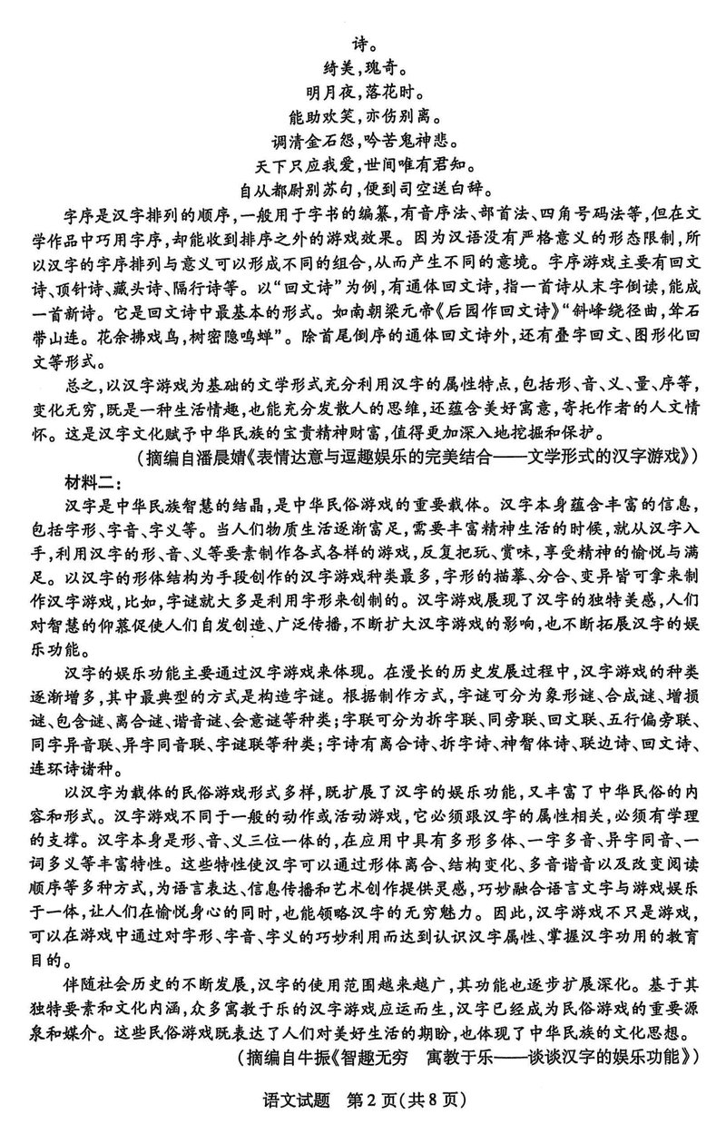 语文试题及答案解析