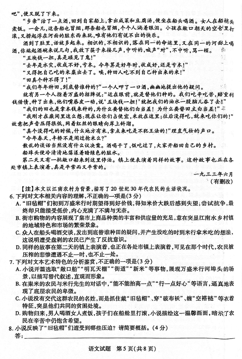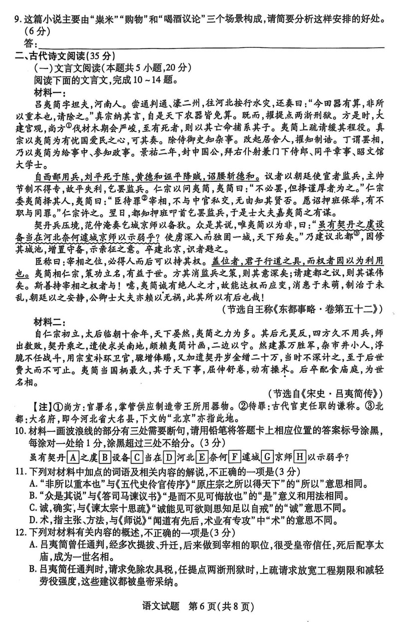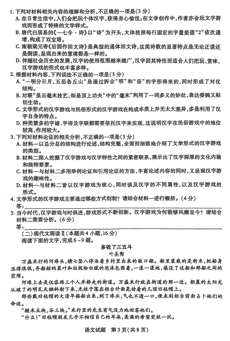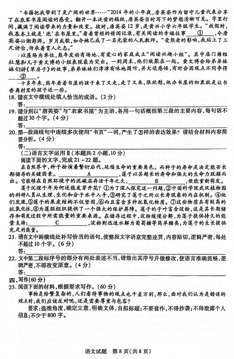 安徽 语文试题