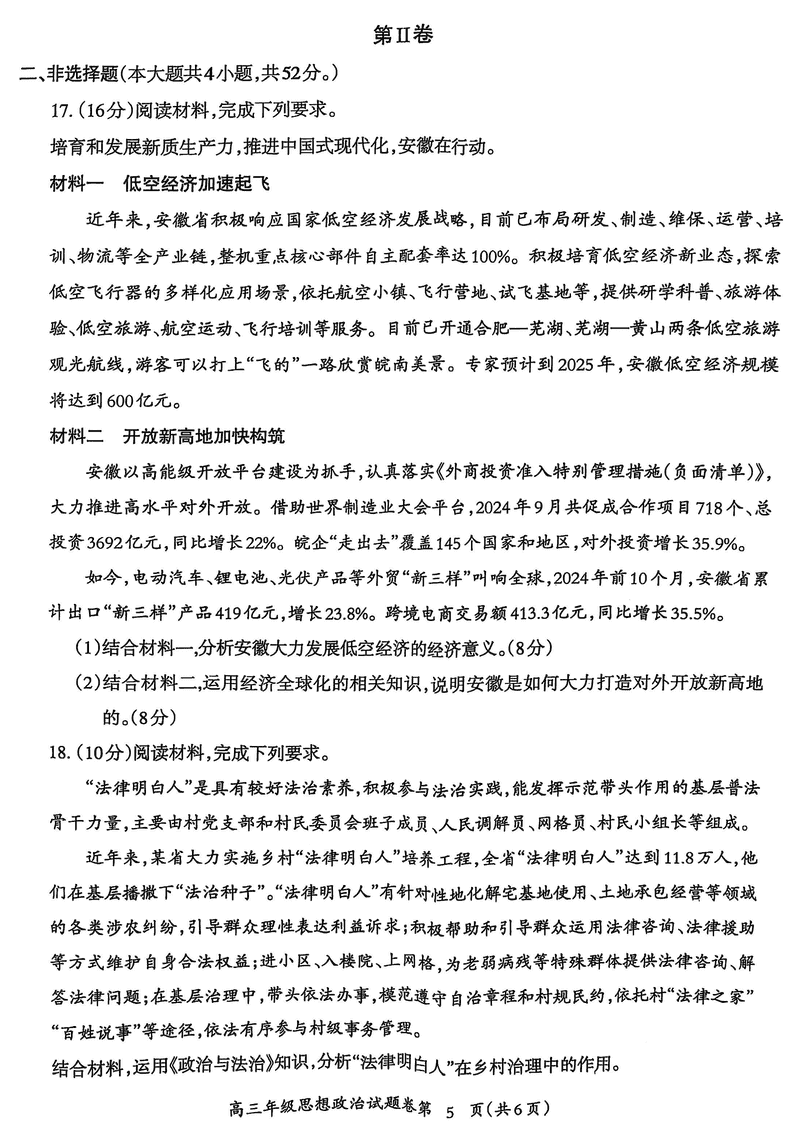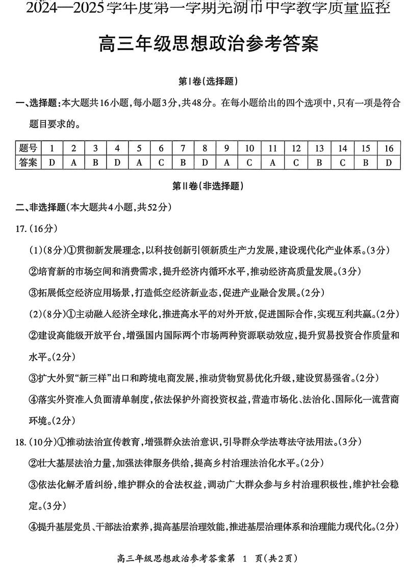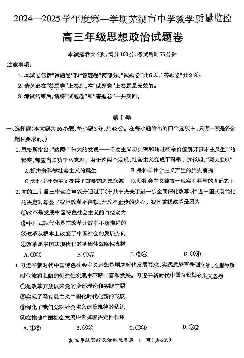 安徽芜湖2025届高三上学期1月期末政治试题及答案 时间:2025-01-27 安徽 文综试题 安徽芜湖2025届高三上学期1月期末政治考试已于近日开考,为方便考生考后及时查看考试情况,查漏补缺、弥补不足,本文整理了试题答案解析相关信息! 汇总:安徽芜湖2025届高三上学期1月期末试题及答案汇总 政治试题及答案解析