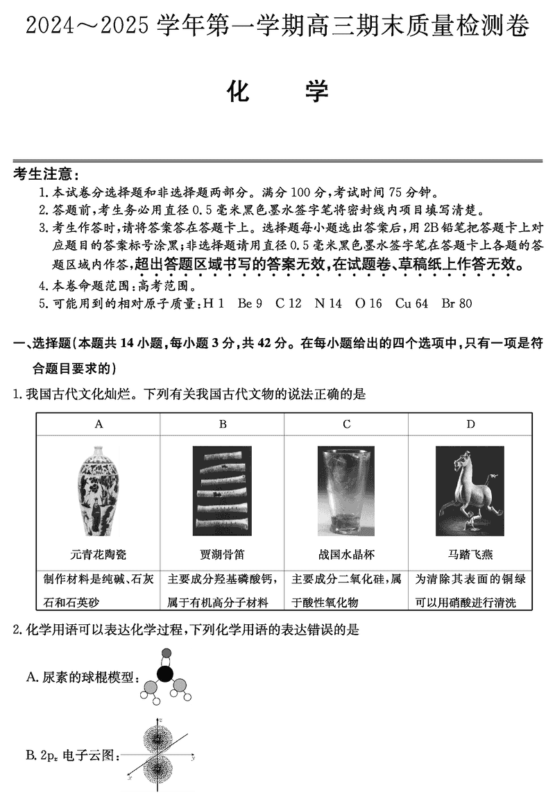 山西省三晋卓越联盟2025届高三上学期期末化学考试已于近日开考,为方便考生考后及时查看考试情况,查漏补缺、弥补不足,本文整理了试题答案解析相关信息!