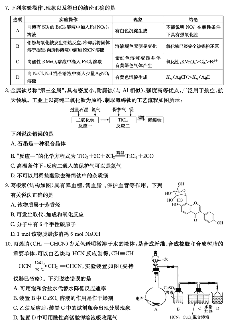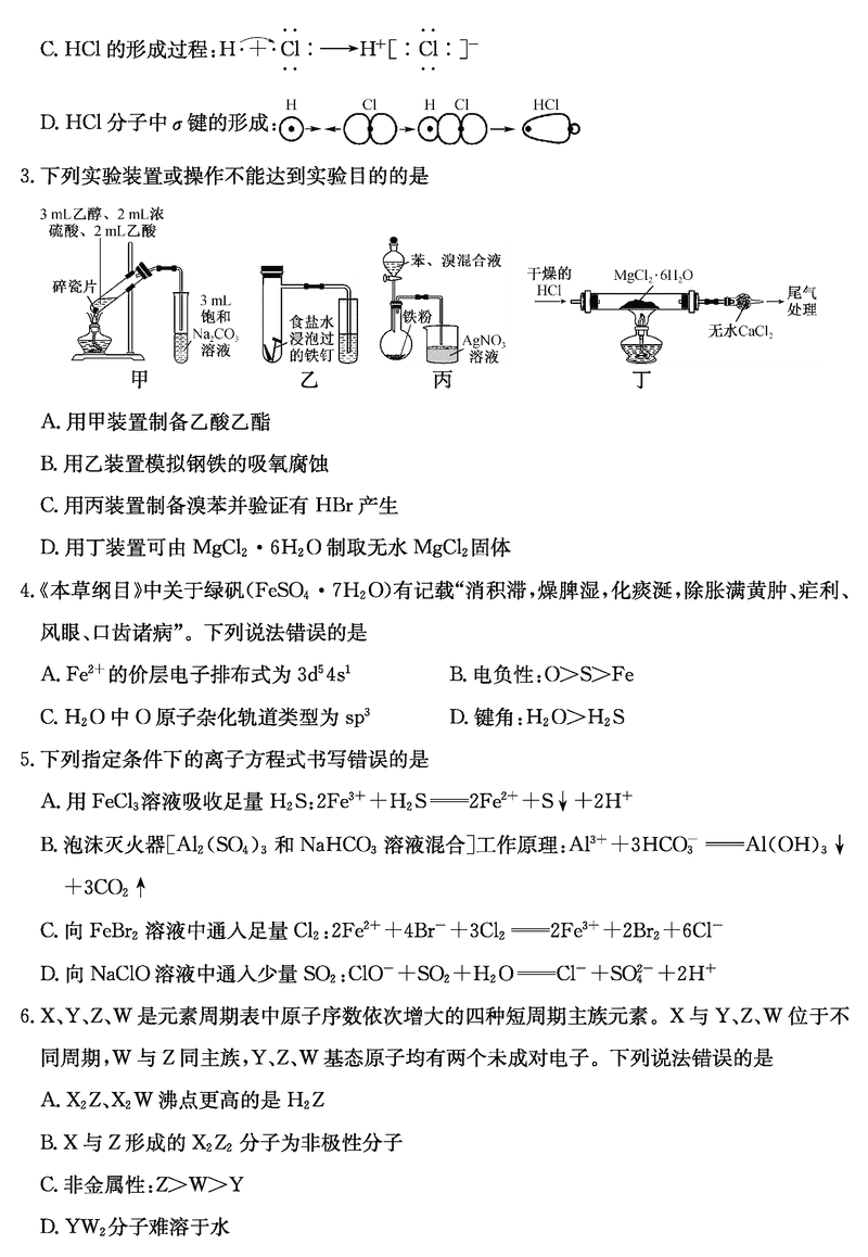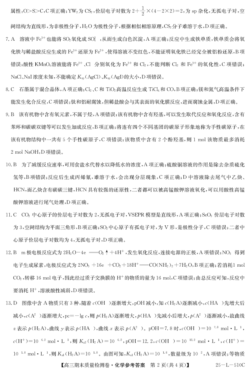 山西三晋卓越联盟2025届高三上学期期末化学试题及答案