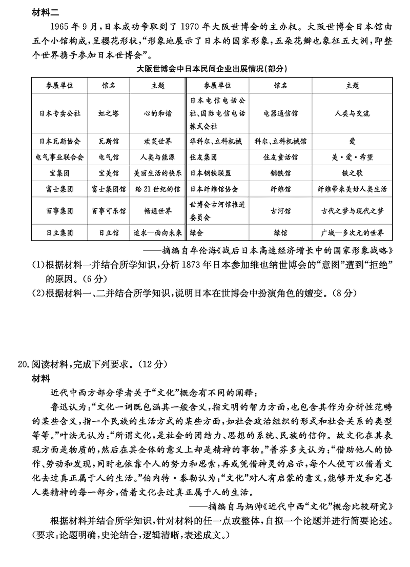 历史试题及答案解析