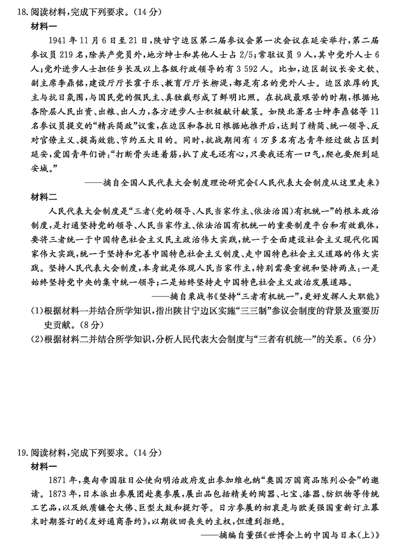 山西 文综试题