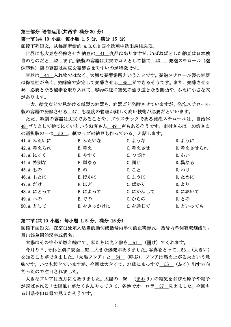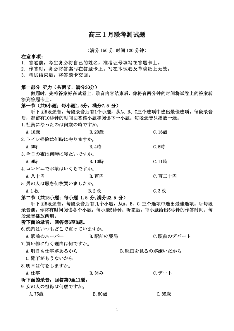 山西三晋卓越联盟2025届高三上学期期末日语试题及答案