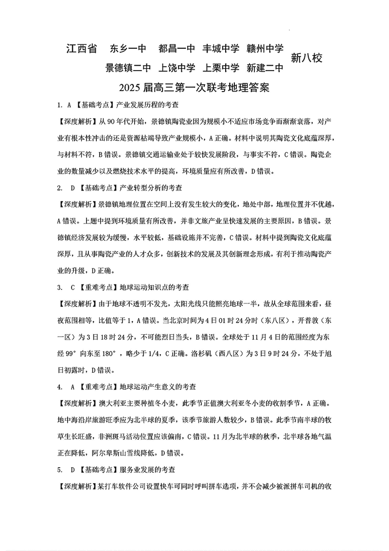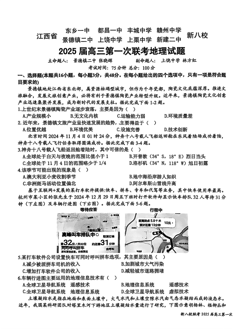 江西省新八校2025届高三第一次联考地理考试已于近日开考,为方便考生考后及时查看考试情况,查漏补缺、弥补不足,本文整理了试题答案解析相关信息!