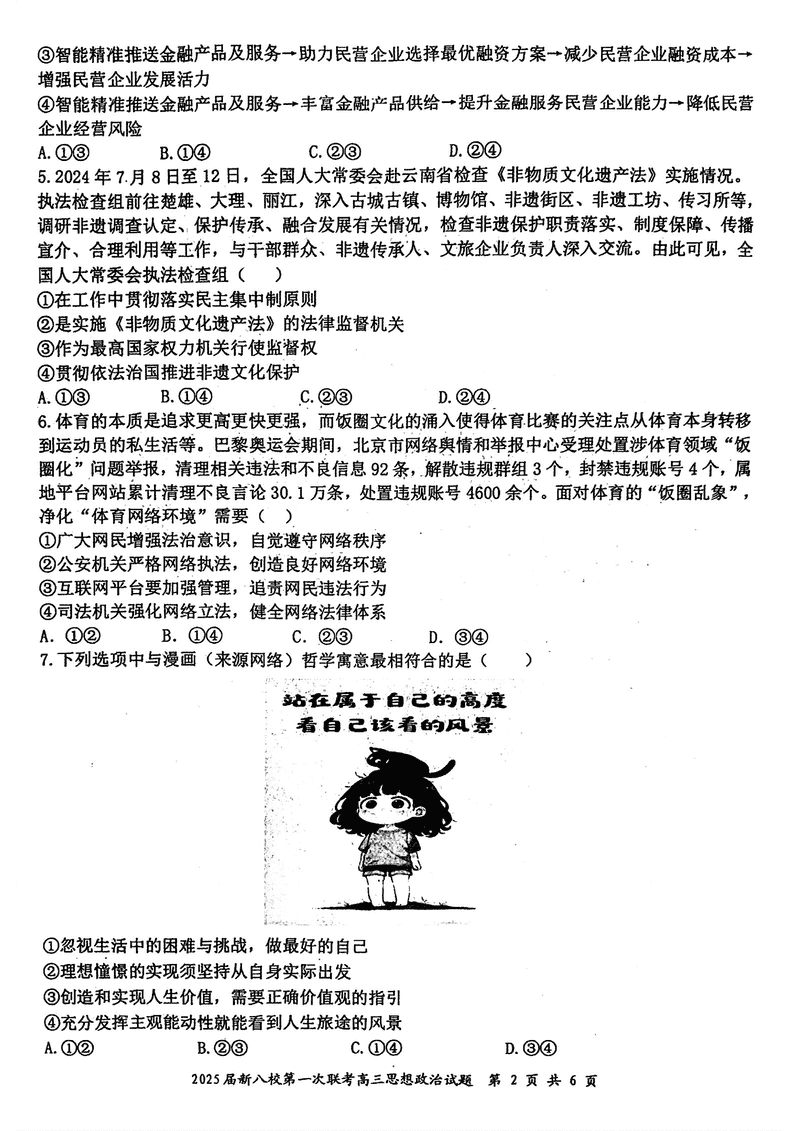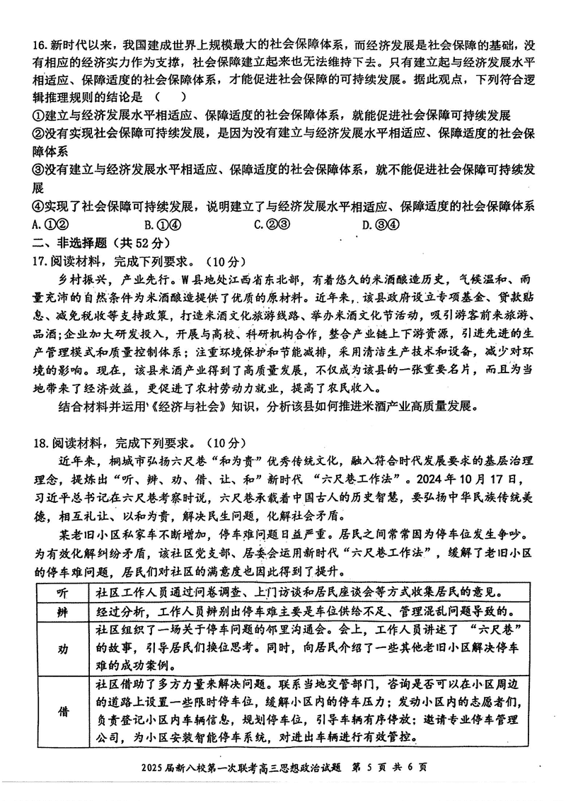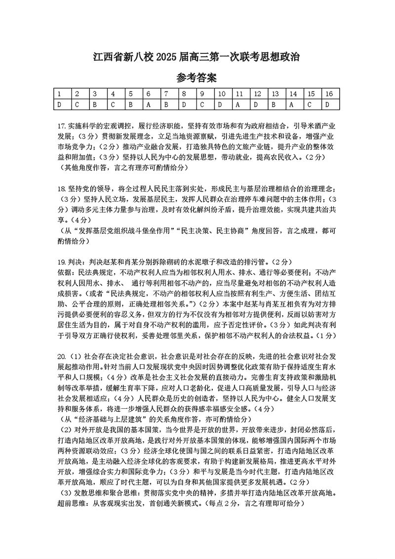 江西省新八校2025届高三第一次联考政治试题及答案 时间:2025-01-27 江西 文综试题 江西省新八校2025届高三第一次联考政治考试已于近日开考,为方便考生考后及时查看考试情况,查漏补缺、弥补不足,本文整理了试题答案解析相关信息! 汇总:江西省新八校2025届高三第一次联考试题及答案汇总 政治试题及答案解析