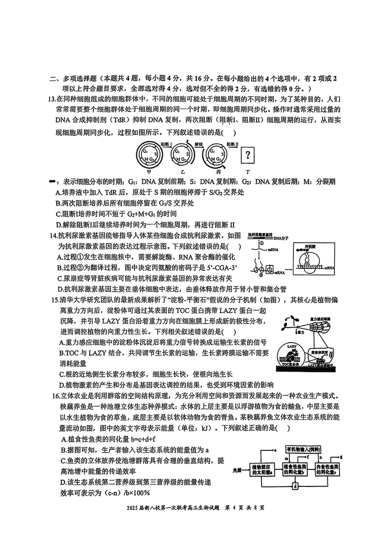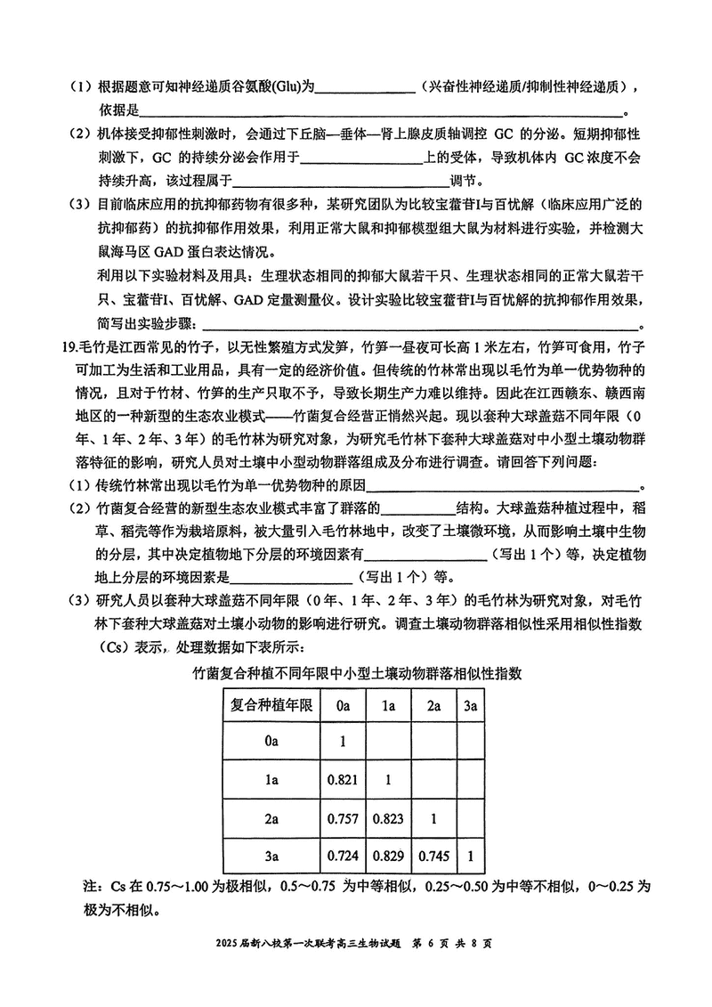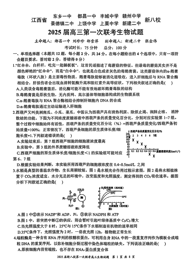 江西省新八校2025届高三第一次联考生物试题及答案 时间:2025-01-27 江西 理综试题 江西省新八校2025届高三第一次联考生物考试已于近日开考,为方便考生考后及时查看考试情况,查漏补缺、弥补不足,本文整理了试题答案解析相关信息! 汇总:江西省新八校2025届高三第一次联考试题及答案汇总 生物试题及答案解析