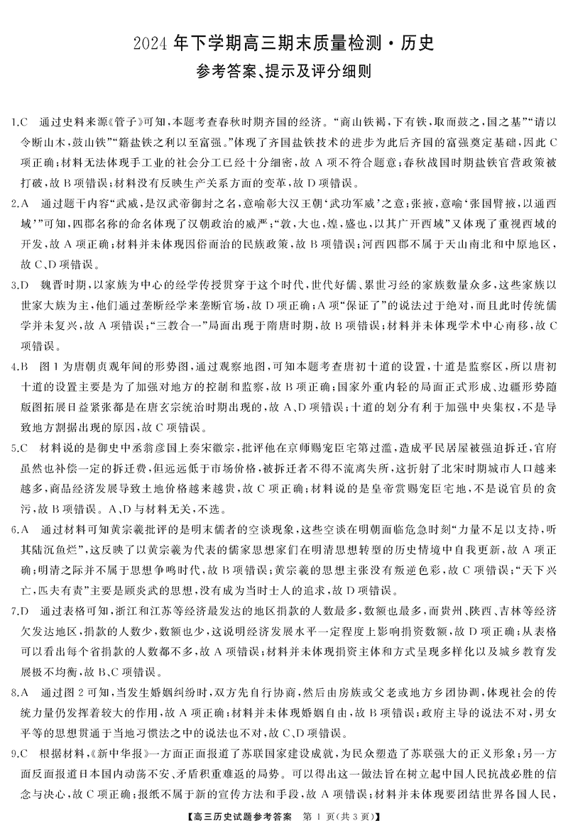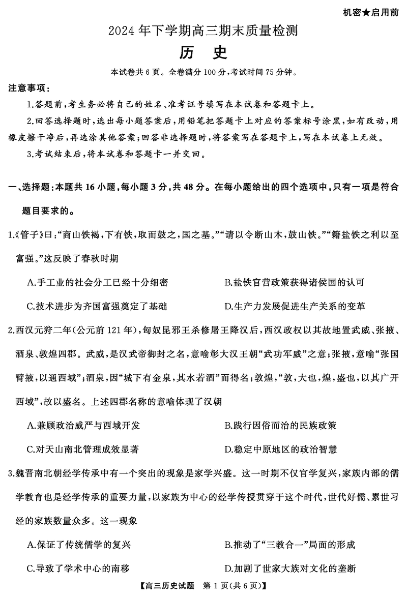 湖南五市2025届高三1月期末质量检测历史试题及答案 时间:2025-01-27 湖南 文综试题 湖南五市2025届高三1月期末质量检测历史考试已于近日开考,为方便考生考后及时查看考试情况,查漏补缺、弥补不足,本文整理了试题答案解析相关信息! 汇总:湖南五市2025届高三1月期末质量检测试题及答案汇总 历史试题及答案解析