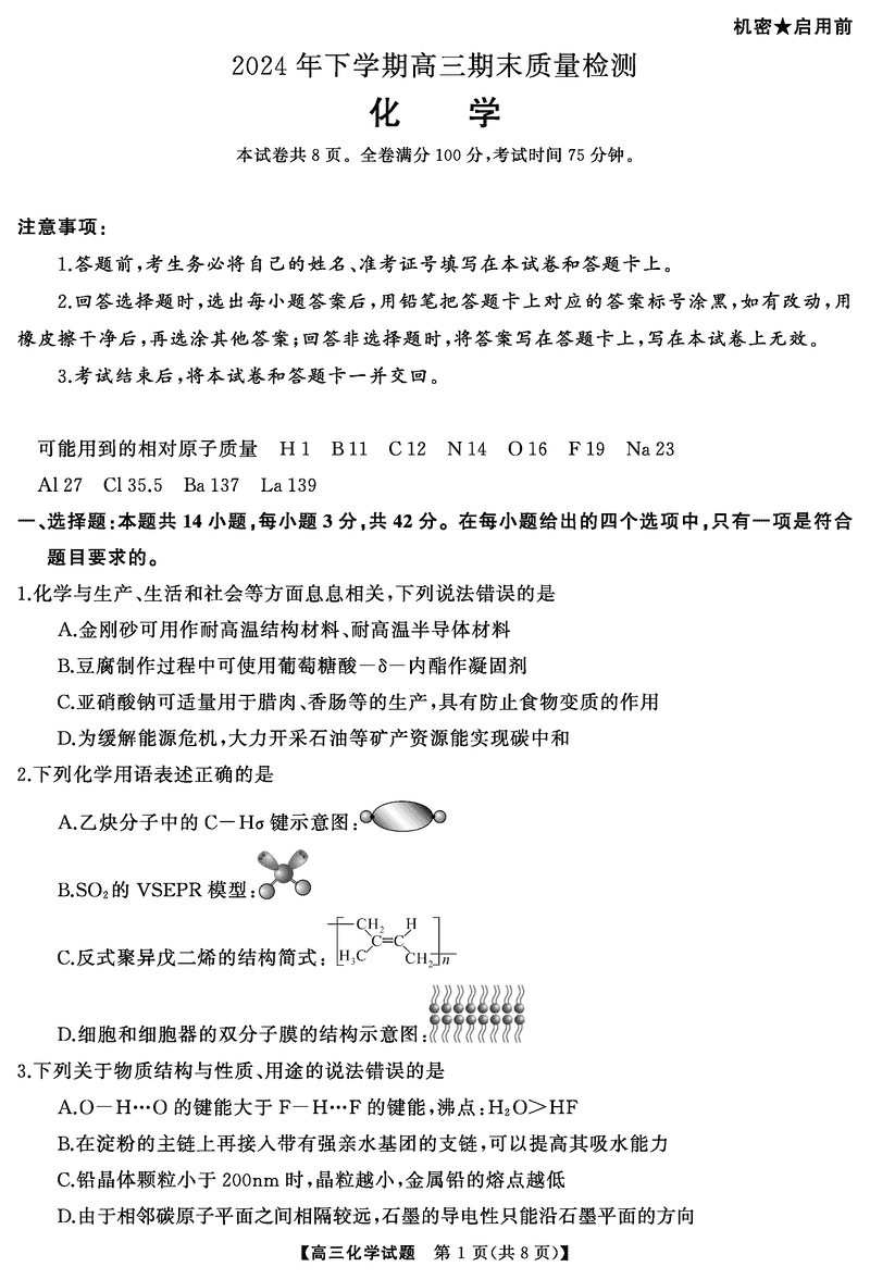 湖南五市2025届高三1月期末质量检测化学试题及答案 时间:2025-01-27 湖南 理综试题 湖南五市2025届高三1月期末质量检测化学考试已于近日开考,为方便考生考后及时查看考试情况,查漏补缺、弥补不足,本文整理了试题答案解析相关信息! 汇总:湖南五市2025届高三1月期末质量检测试题及答案汇总 化学试题及答案解析